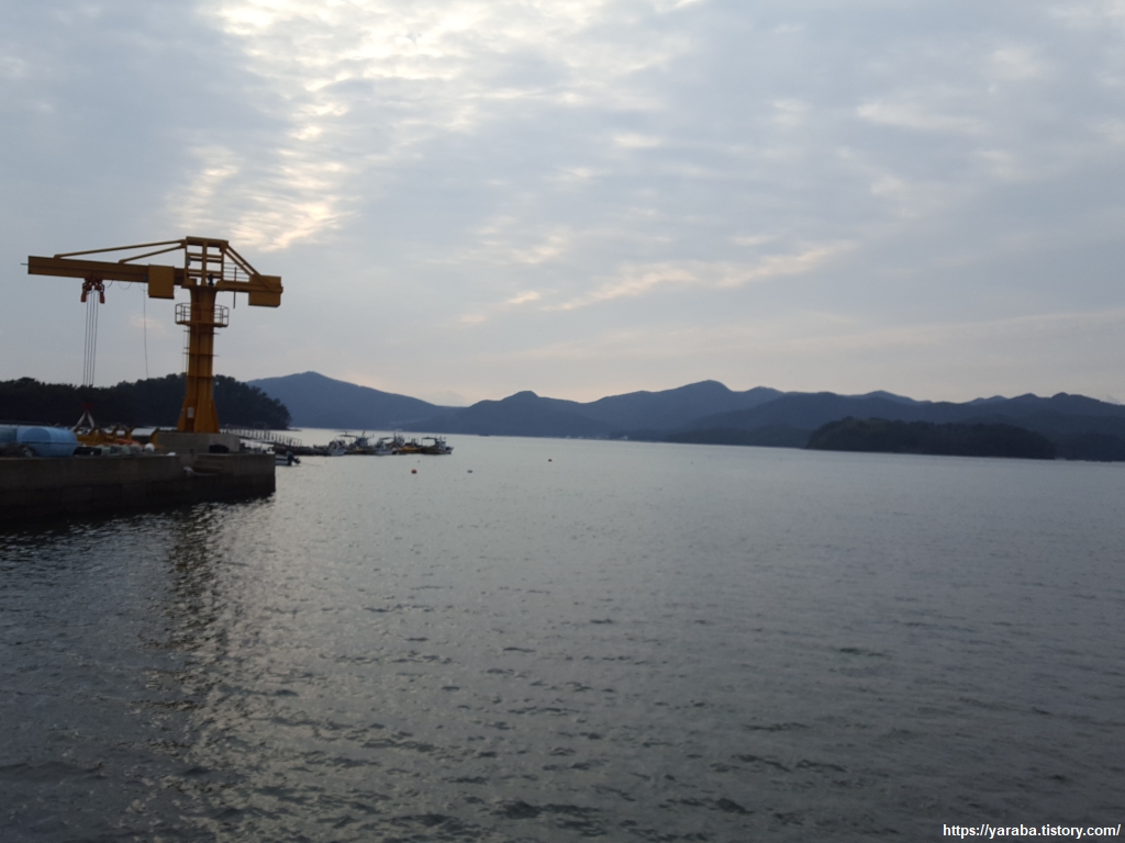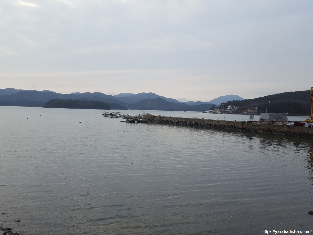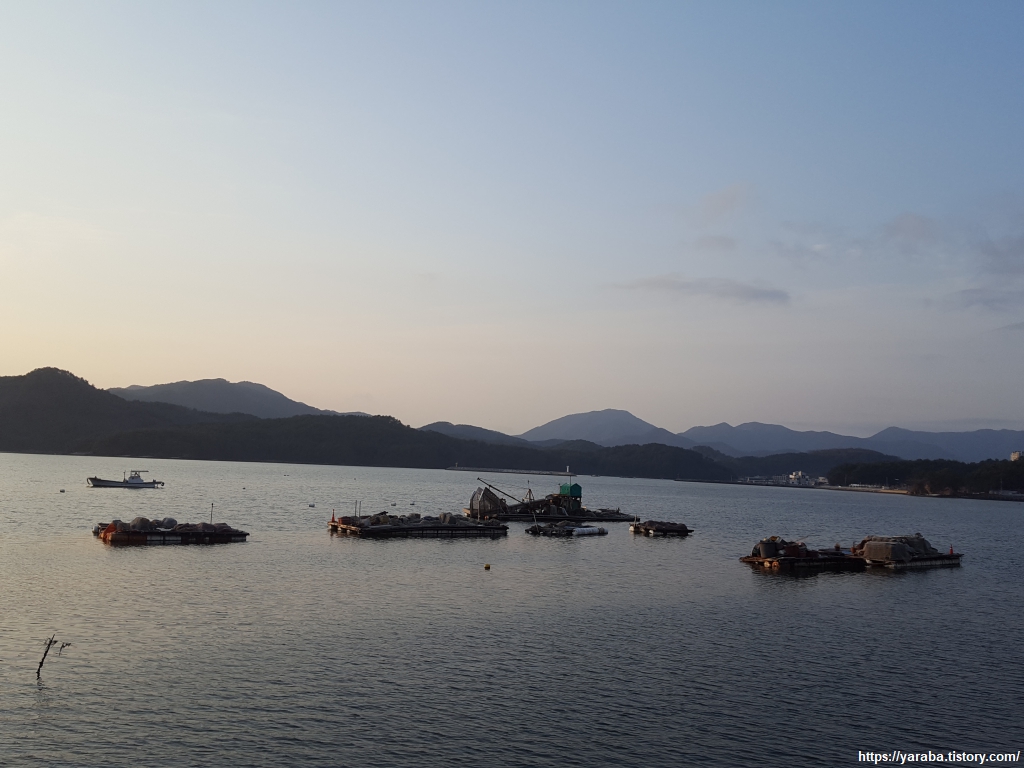 바다 위에 널브러져 둥둥 떠있는 양식 기구들 조차 풍경의 일부가 된다.