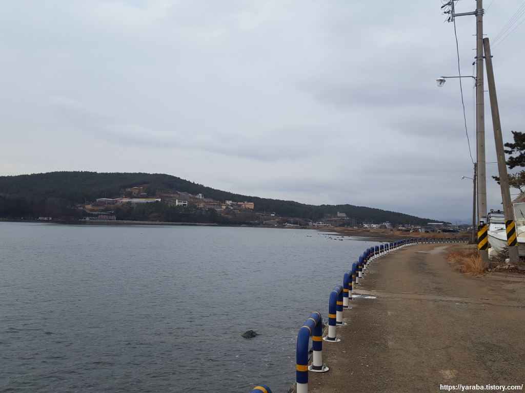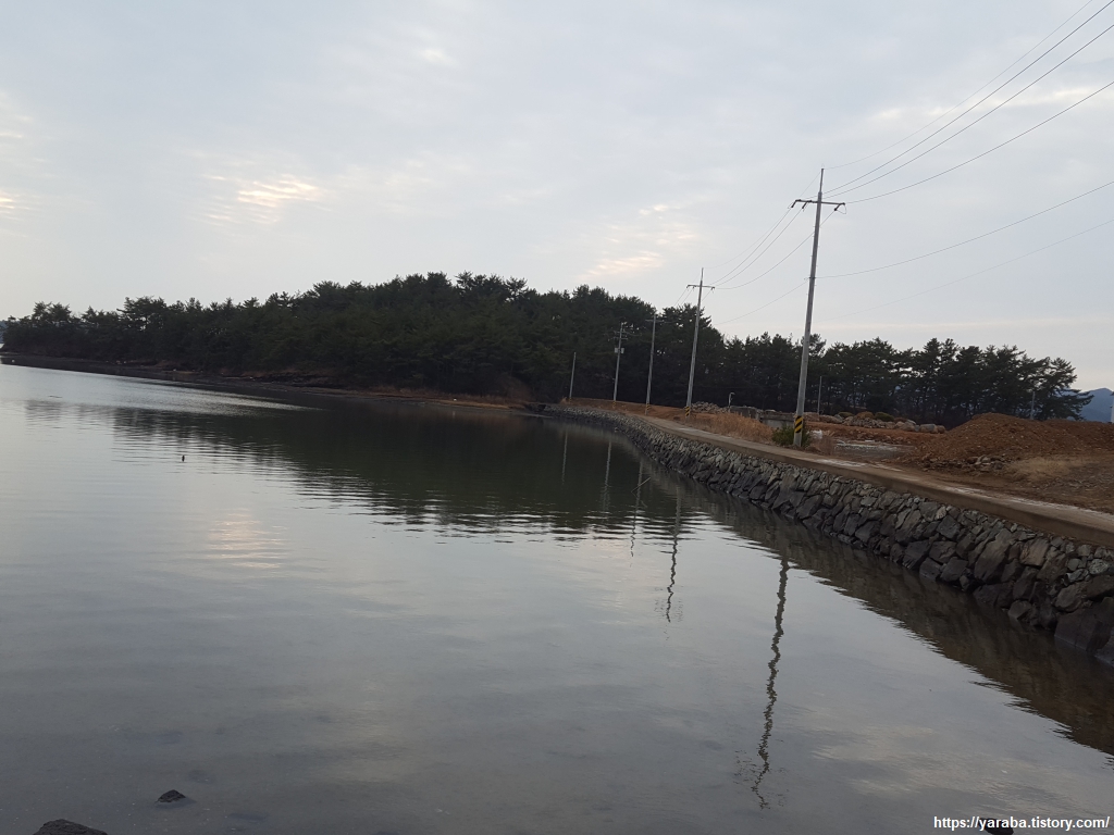 월평리 해안 제방길을 따라서 길을 이어간다.
