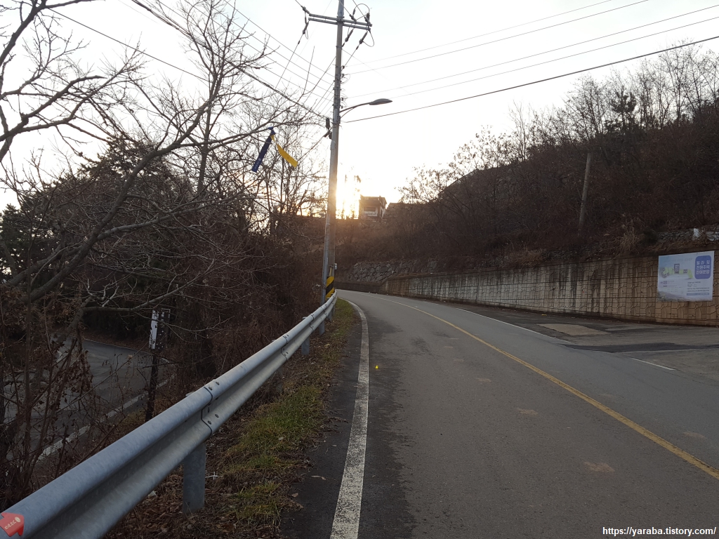 월평리 끝자락으로 향하는 길, 서쪽 하늘은 석양이 새털구름들을 뚫고 자신의 존재를 드러내기 시작했다.