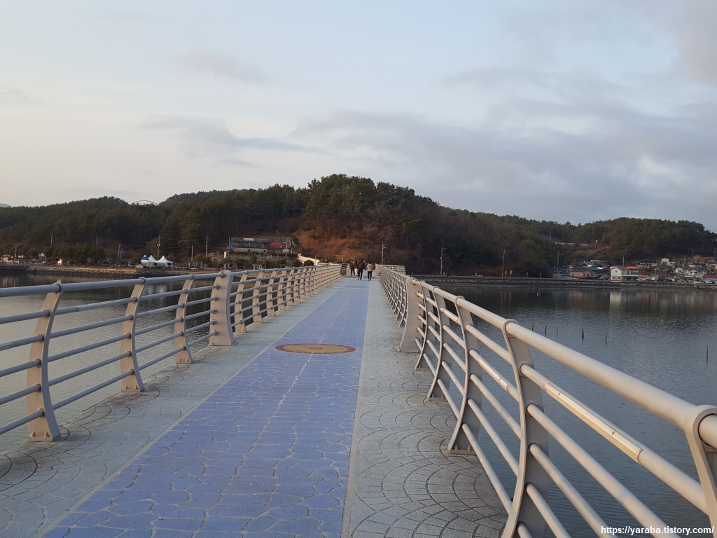 신부마을 앞바다를 가로지르는 해지개 다리 위에서는 한 가족이 아름다운 석양을 배경으로 다양한 포즈를 취하며 사진 찍기에 여념이 없다. 두 손으로 태양을 떠 받치고 있는 모습, 태양을 머리 장식처럼 달고 있는 모습 등 해지개 다리 위에서는 안 되는 것이 없다.