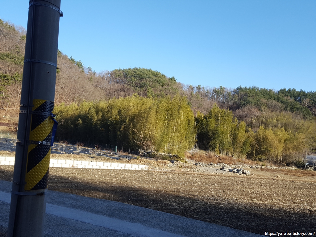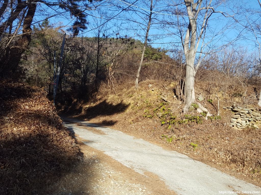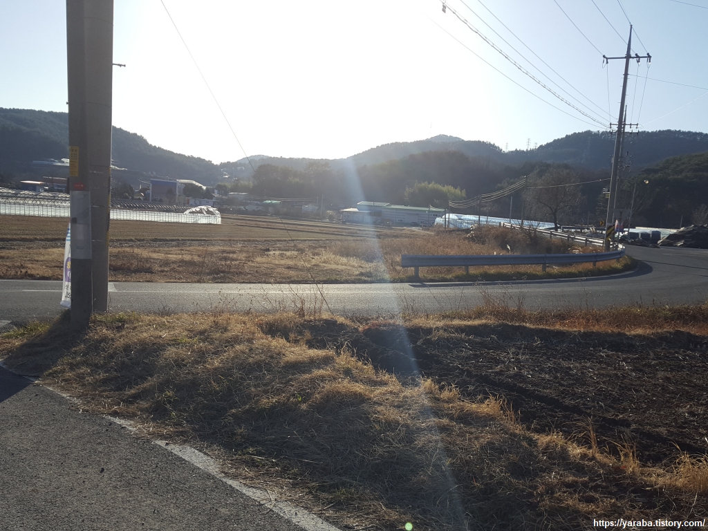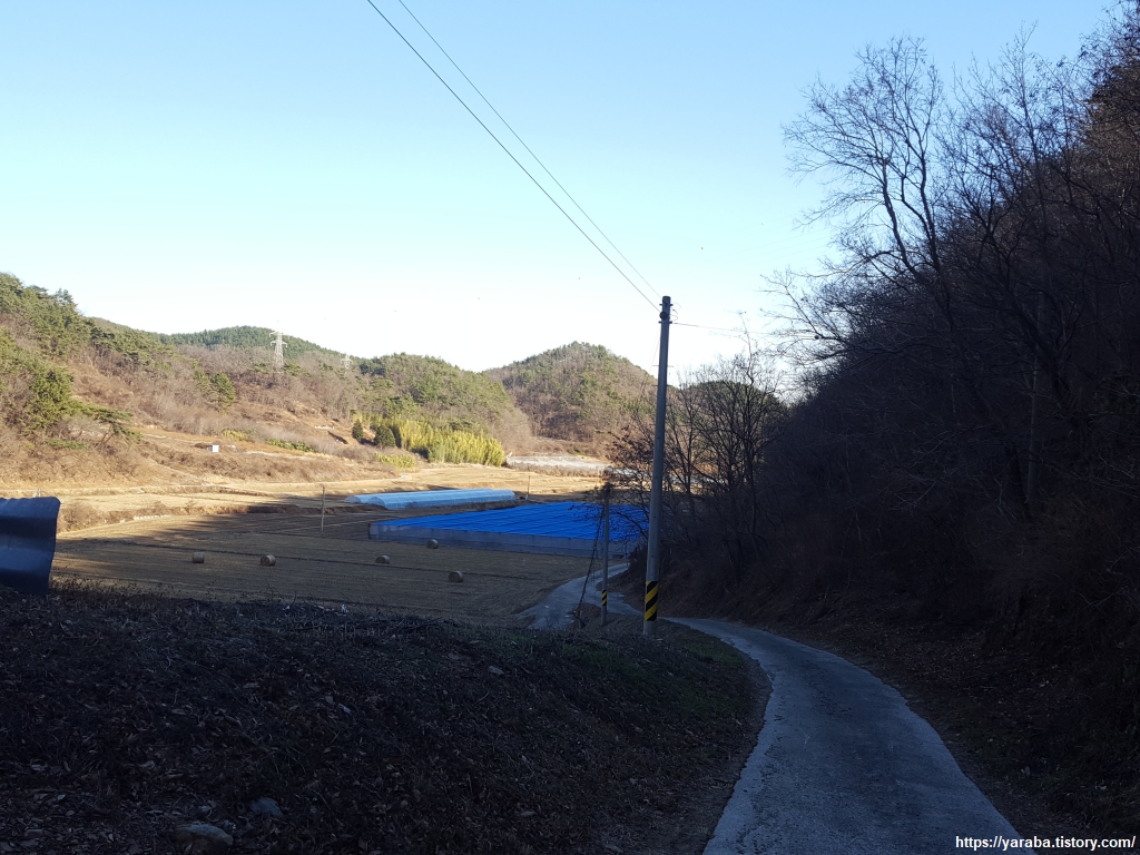 학동 저수지 인근에서 저수지 쪽으로 내려가는 길을 발견하여 좌회전하여 길을 찾아 나선다.