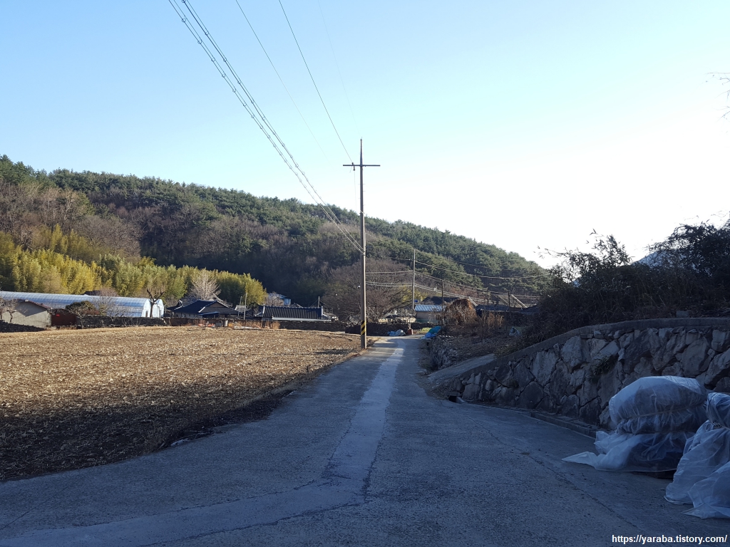 학동 저수지를 뒤로 하고 학동 마을로 향하는 길, 등 뒤로는 멀리 학동치 고개가 아른 거리고 앞으로는 잠시후면 만나게 될 남파랑길이 기대가 된다.