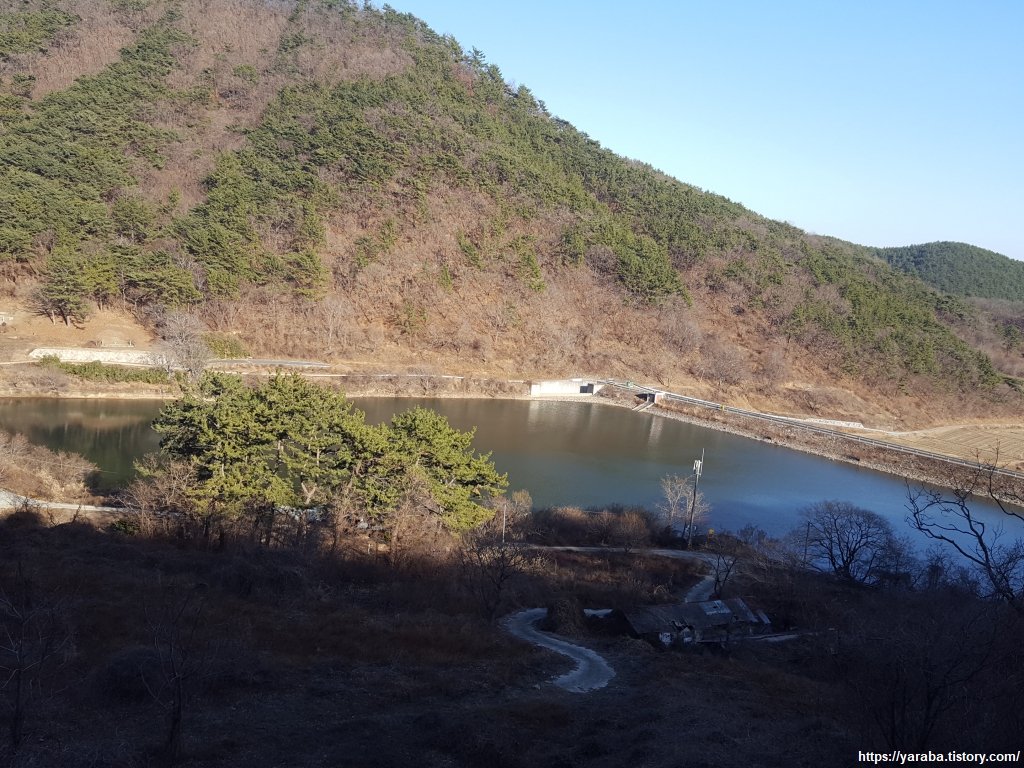 저수지로 내려가는 길을 발견하니 원래의 남파랑길을 찾아가는 길이 더욱 가까워진다. 저수지 아래 학동 마을의 논에 농업용수를 공급하는 저수지이다.