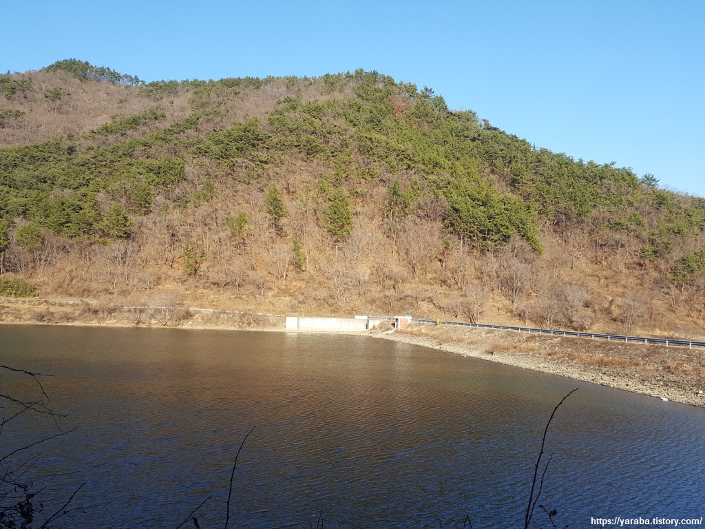 저수지 옆길을 통해서 학동 마을을 향해 이동한다.