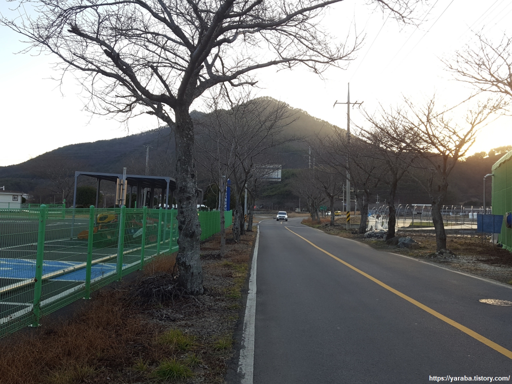 회룡 마을 정류장으로 나온 남파랑길은 지포 마을까지 도로변을 걸어간다. 캄캄한 어둠을 앞둔 저녁 시간, 이곳을 지나는 자동차가 반가울 정도로 조용하다.