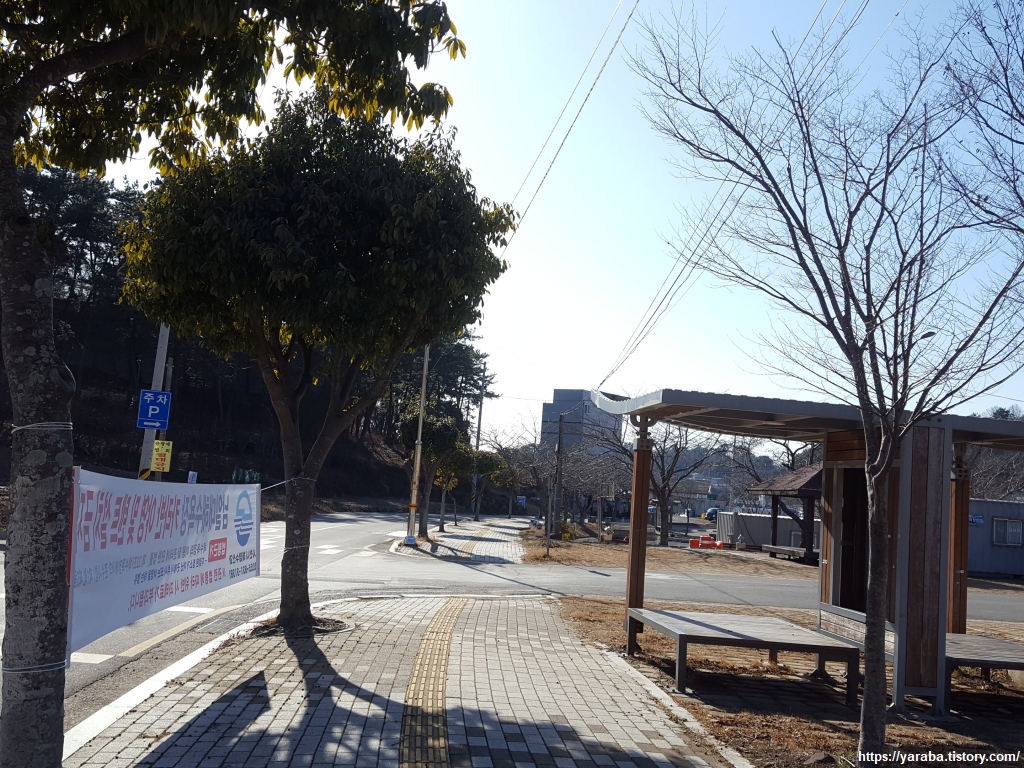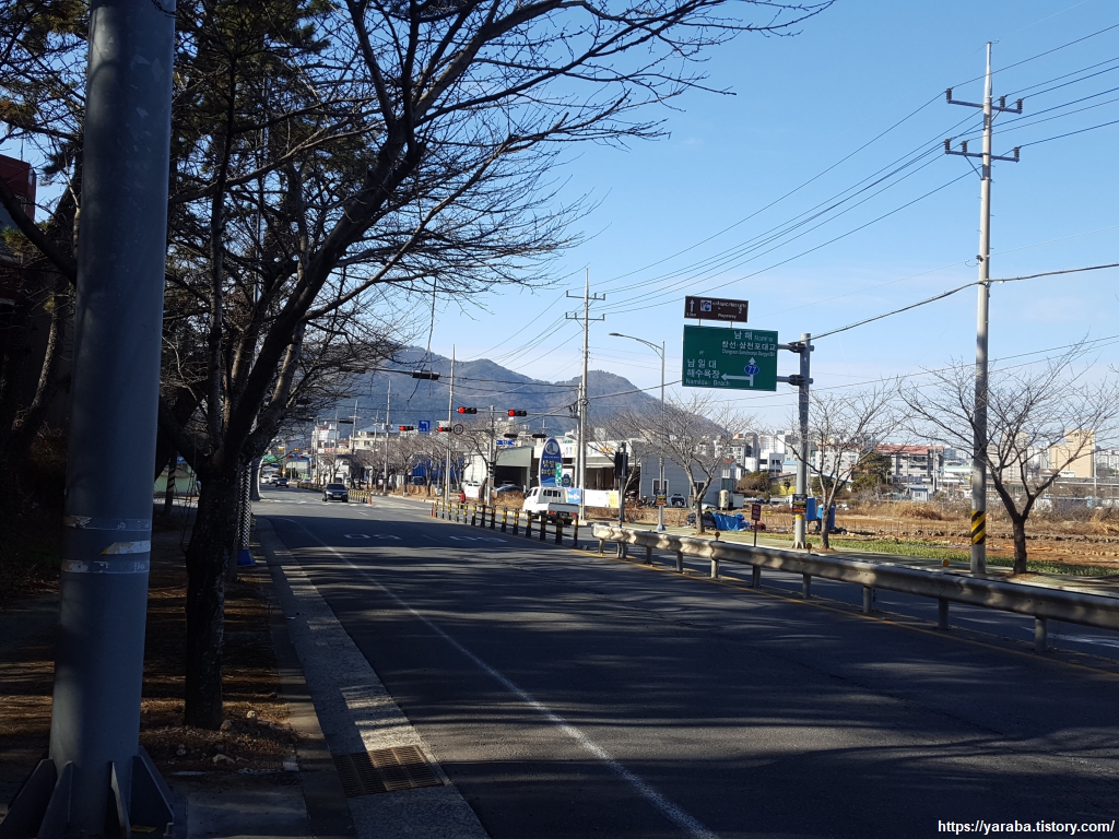 향촌 농공 단지 입구를 지나 남일대 해수욕장 방면으로 좌회전하여 길을 이어간다.
