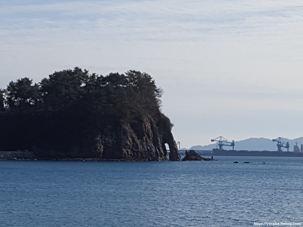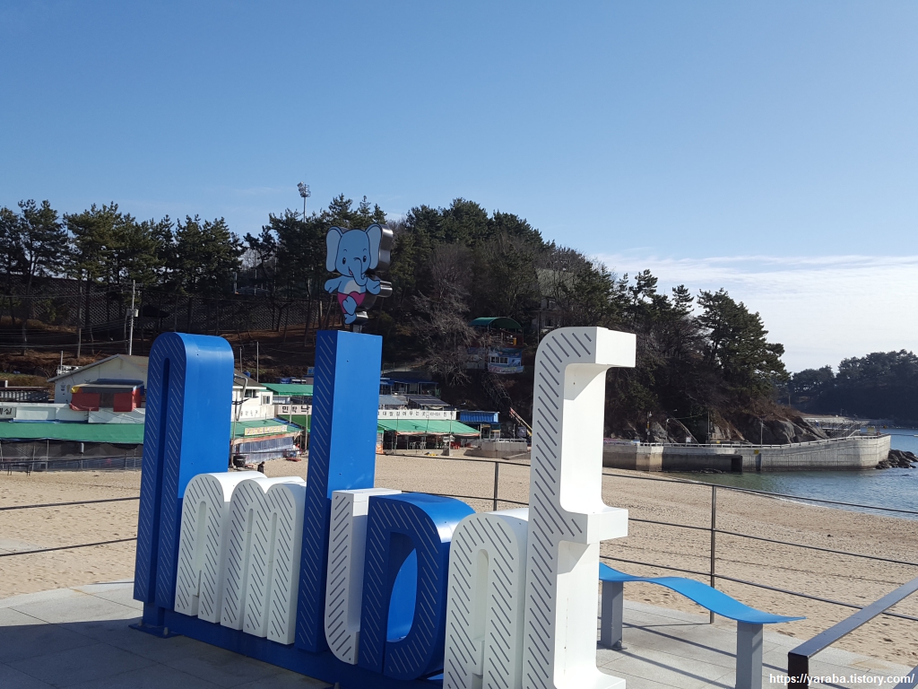 반대편에서 보니 코끼리 바위의 모습이 더욱 선명하다. 발전소가 배경으로 등장하기는 하지만 정말 아름다운 해변이다.