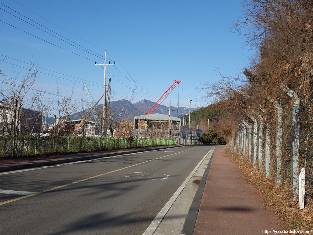 길은 삼천포 신항 옆 도로를 따라 계속 직진한다.
