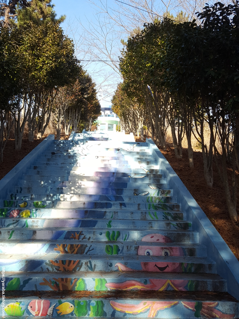 이제 길은 뒤로 돌아 바닷속 풍경을 그려 넣은 계단을 올라 진널 전망대 방향으로 이동한다.