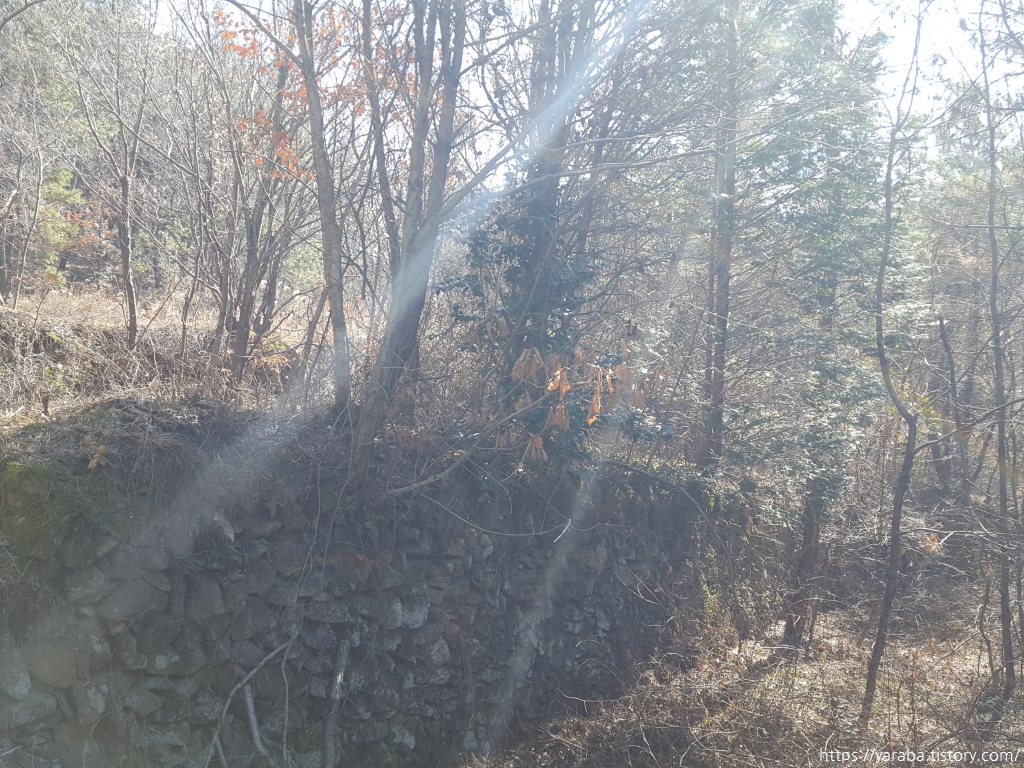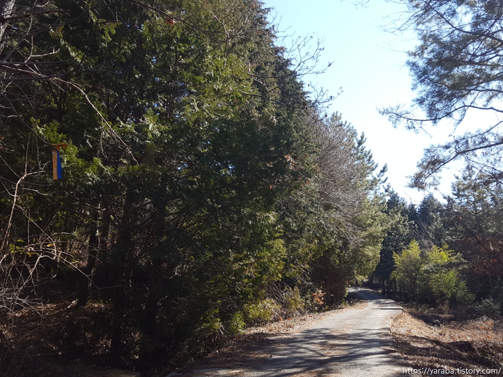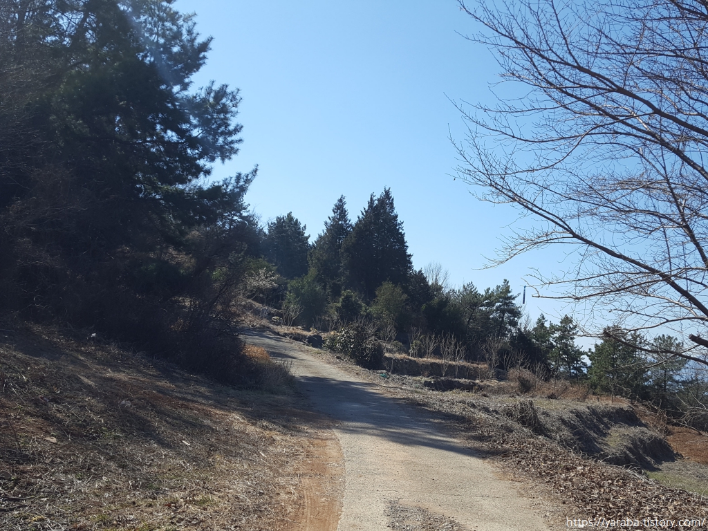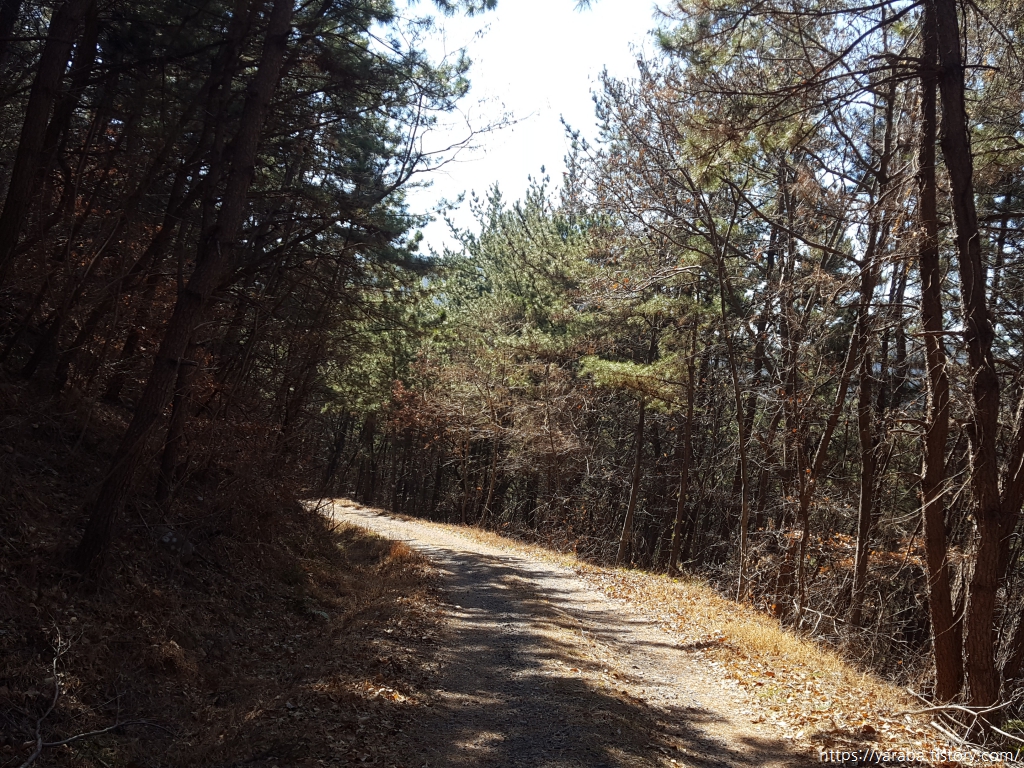 정면으로 연태산 자락을 보면서 오르는 길이지만 방향으로 치자면 남쪽으로 향하는 길이다. 강렬한 정오의 햇살이 가끔씩 밀려오는 쌀쌀함 마저 녹여준다.