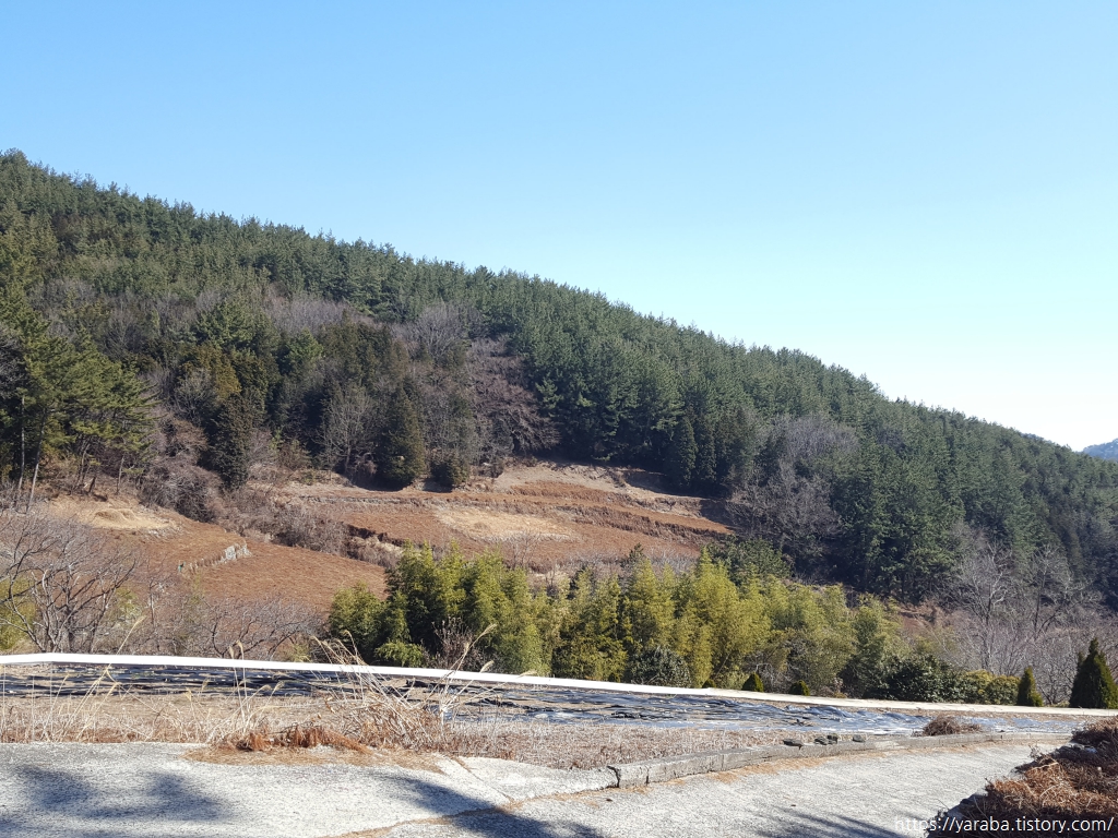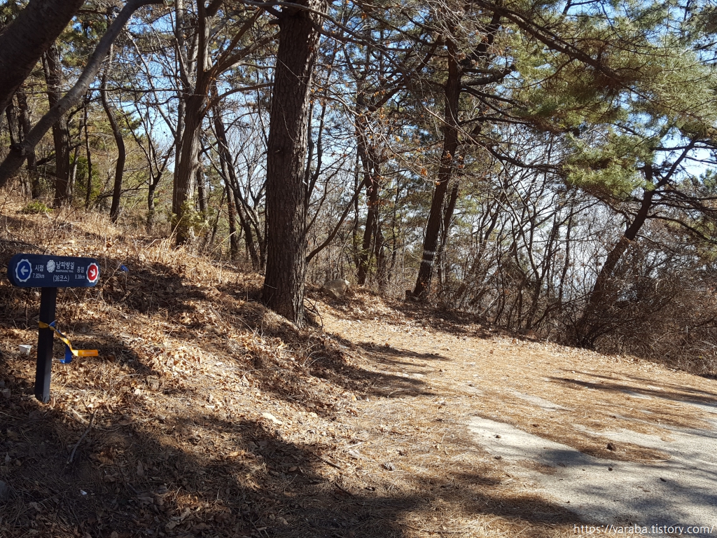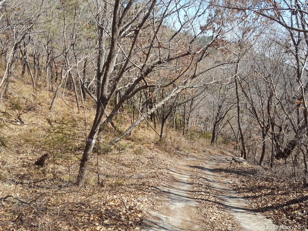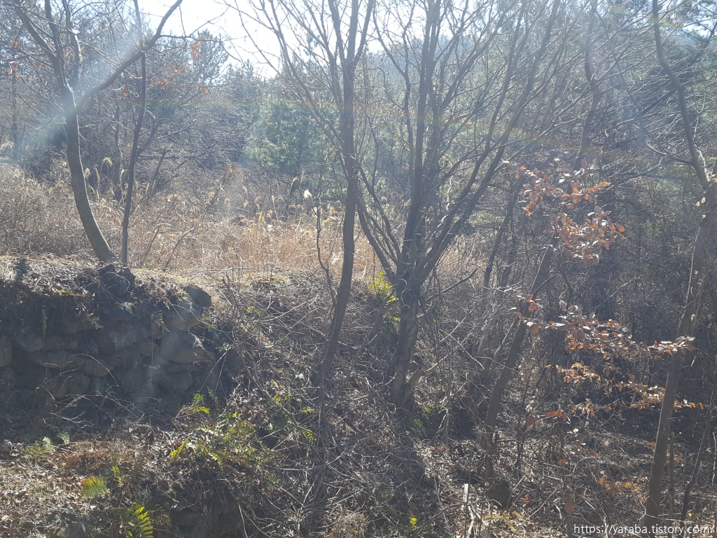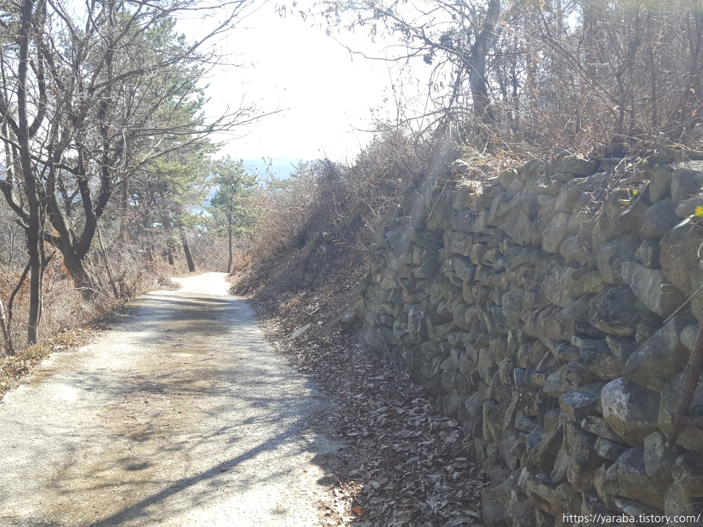 정면으로 연태산 자락을 보면서 오르는 길이지만 방향으로 치자면 남쪽으로 향하는 길이다. 강렬한 정오의 햇살이 가끔씩 밀려오는 쌀쌀함 마저 녹여준다.