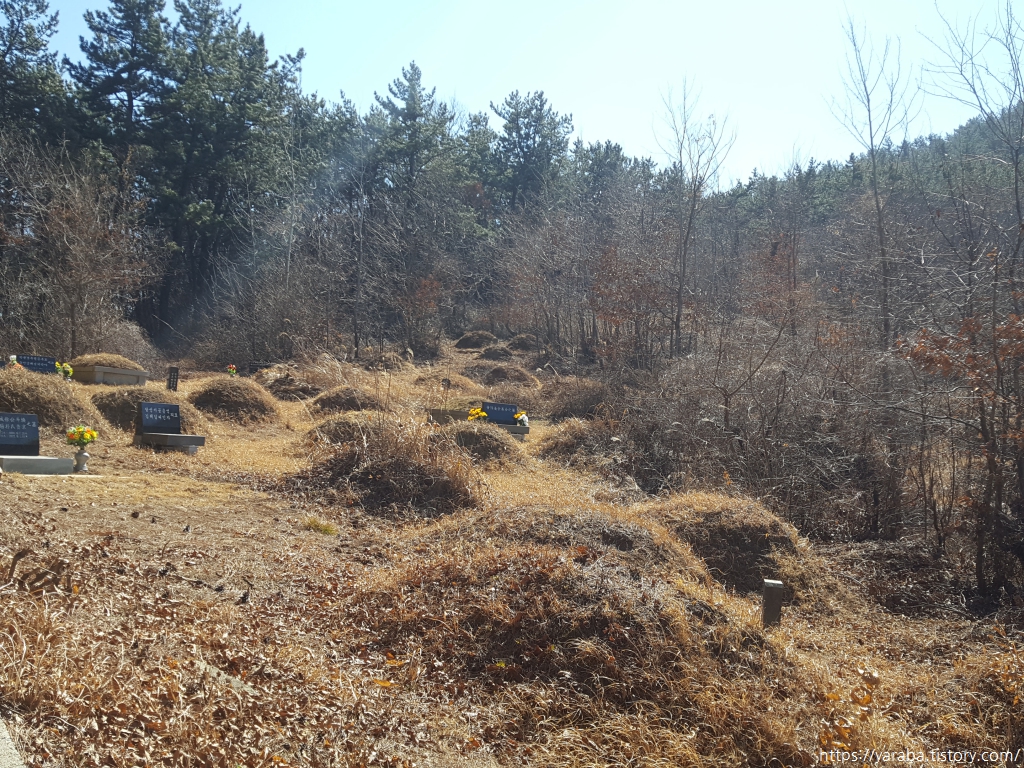 대사산 언덕으로 자리 잡은 누런 봉분들을 보니 반백년을 넘긴 나이에 누리는 여유에 대한 감사와 세월의 무상함이 겹쳐진다.