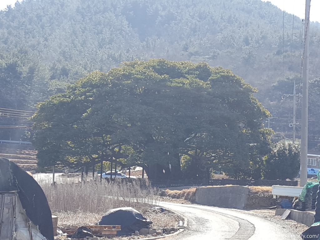 마을길을 따라 올라가다 보면 멀리서도 웅장한 자태를 뽐내는 천연기념물 299호 왕후박나무를 볼 수 있다. 나무의 수령이 500년이 넘는데도 여전히 푸르르다. 마을에서는 매년 나무 앞에서 마을의 평안과 풍어를 기원하며 제사를 지낸다고 하니 오랜 세월 이곳에서 건강하게 자리 잡을 수 있었던 이유는 나무를 귀하게 여기는 마을분들의 마음도 있었기 때문이 아닐까 싶다.