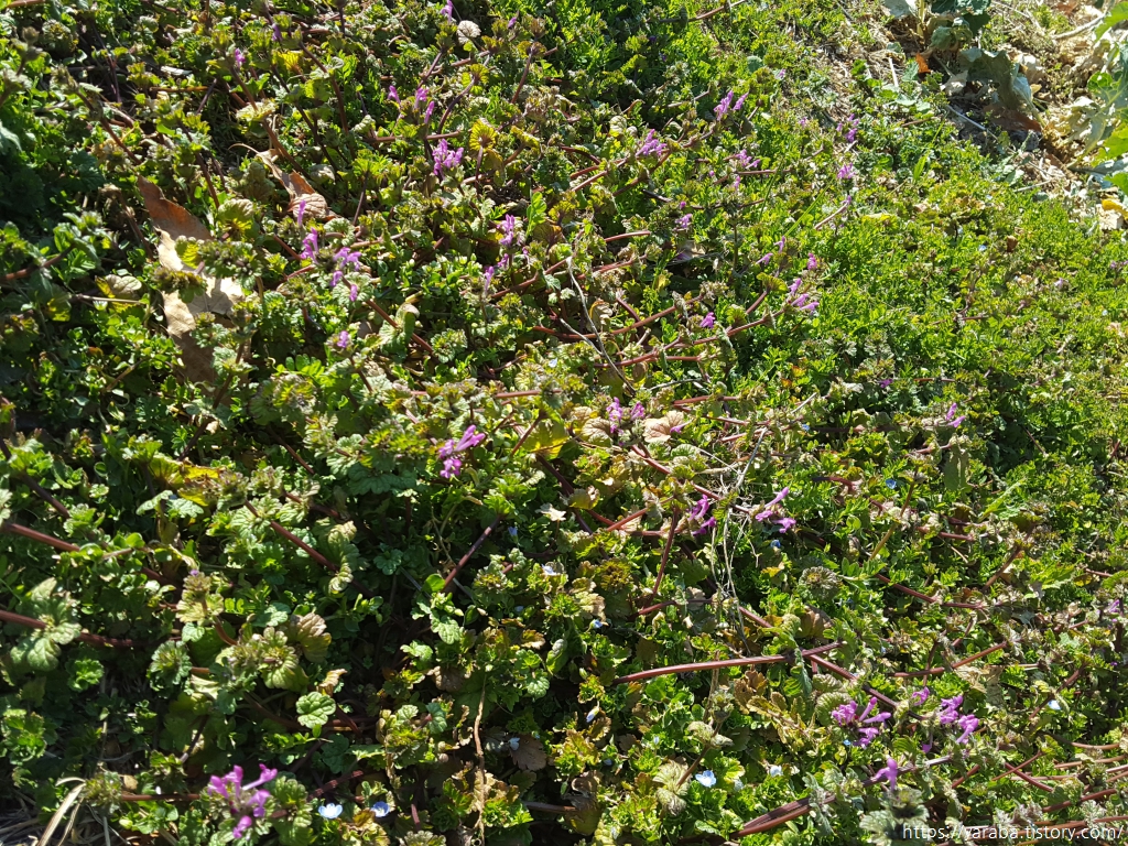 노란 유채 꽃은 아직 없지만 화단에서 자신을 뽐내는 꽃들이 있었다. 우리나라 남부 지방에서 자생하는 두해살이풀 봄까치꽃이다. 별칭은 민망해서 언급하고 싶지도 않지만 푸른색의 작은 봄까치꽃은 이름도 이쁘다.