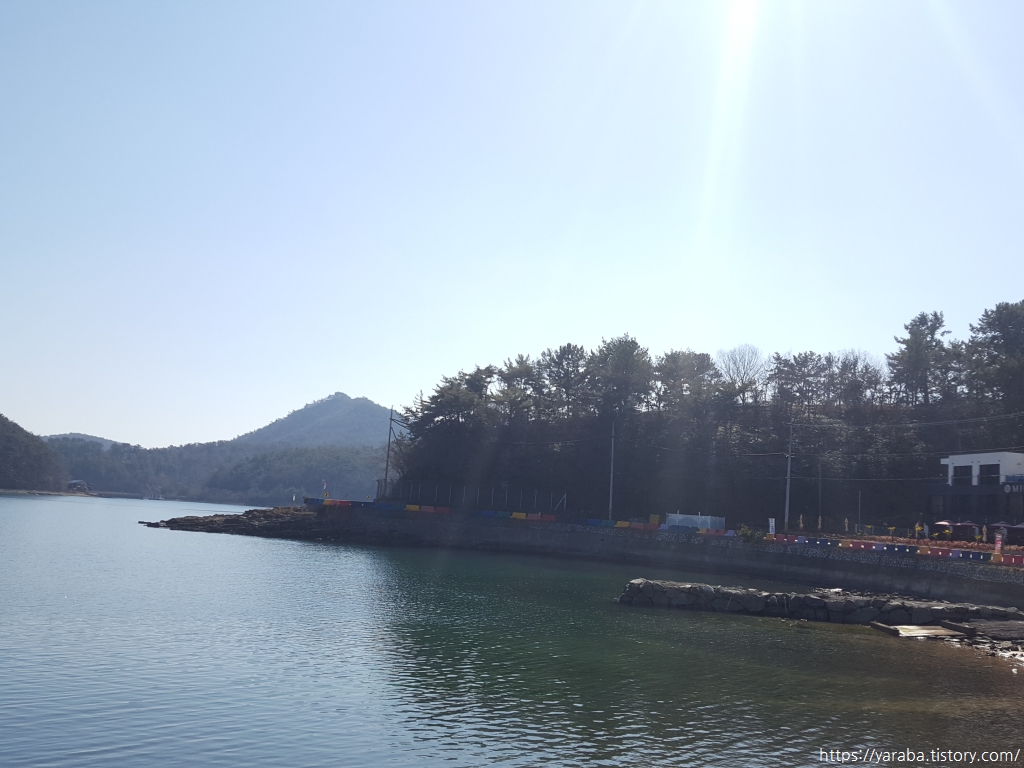 대곡 마을 끝자락에 이르니 반대편으로 멀리 적량 마을도 보인다. 바다 한쪽 구석에는 해상 펜션으로 보이는 구조물이 하나 있었는데, 저 정도면 한 식구가 계속 살 수 있는 해상 가옥이 아닌가 싶을 정도의 규모였다.
