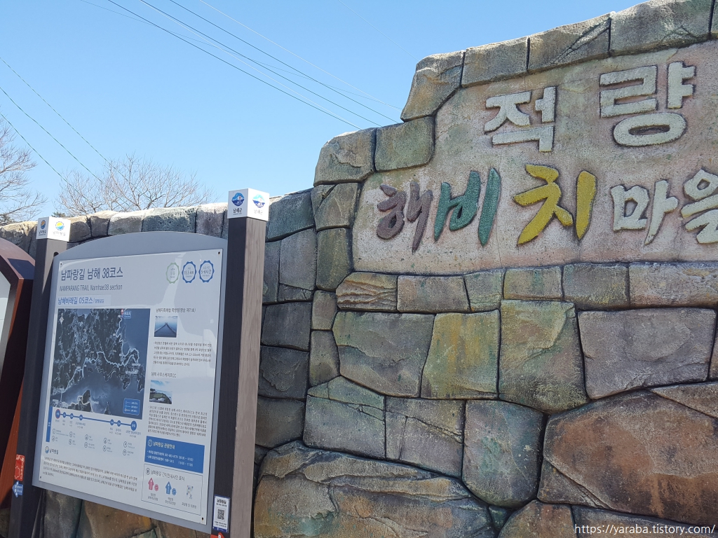 이제 적량 해비치 마을을 떠나 대곡 마을을 향해서 해안길로 남파랑길 38코스를 본격적으로 시작한다. 해가 지기 전에 38코스 종점인 창선교에 도착할 수 있기를 기대하며 힘을 내본다.