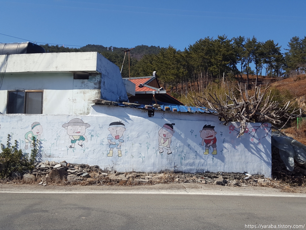 인기척조차 보이지 않는 조용한 마을 해변을 지나면서 벽면에 그려진 재미있는 그림들을 보니 자연스레 미소가 지어진다. 고사리밭에서 즐겁게 고사리를 꺾고 있는 친구들의 웃는 얼굴을 보면서 이곳의 미래가 이렇게 일하는 젊은 사람들이 많은 모습이 된다면 얼마나 좋을까? 하는 생각도 해본다.