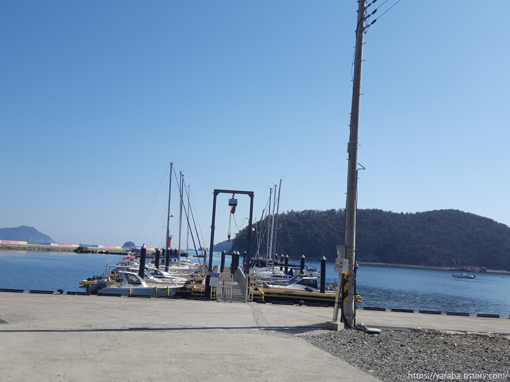마을 전체가 동쪽 바다를 바라보고 있어서 아침부터 오후까지 햇살을 온전히 받을 수 있는 적량 해비치 마을에는 요트 계류장도 있었다. 포구 한쪽에서 요트를 뭍으로 끌어올려서 직접 정비하고 있는 젊은 커플이 있었는데, 자신 시간과 돈과 열정을 쏟는 방법도 다양하구나 하는 생각을 하며 지나간다.