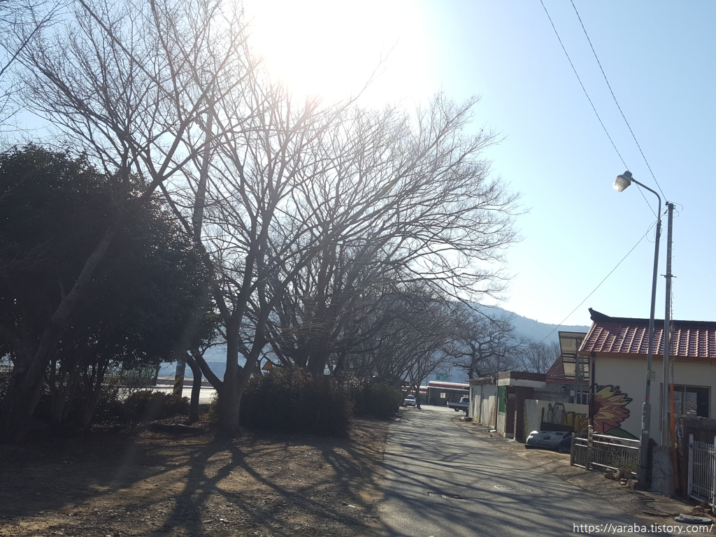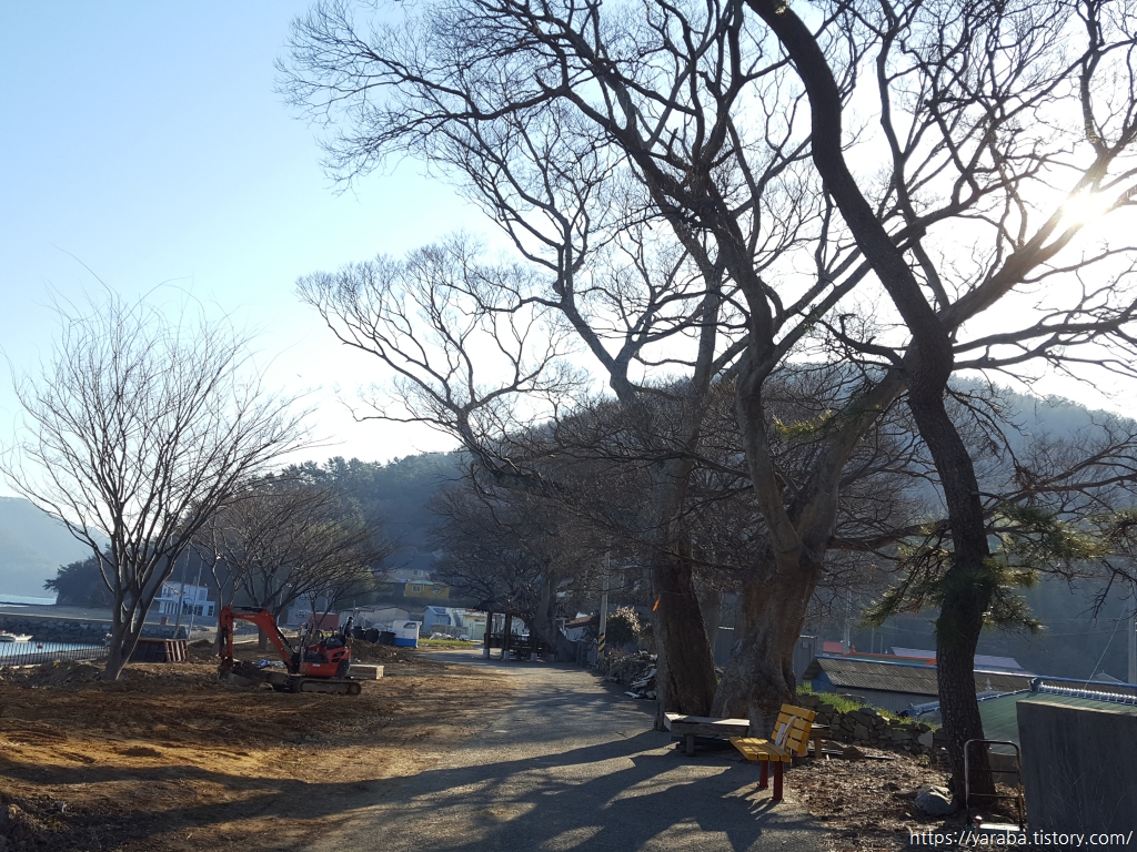전도 마을 포구를 지나 해안에 늘어선 커다란 나무들을 보니 전도 마을이 유서 깊은 마을 맞는구나 하는 생각이 든다.