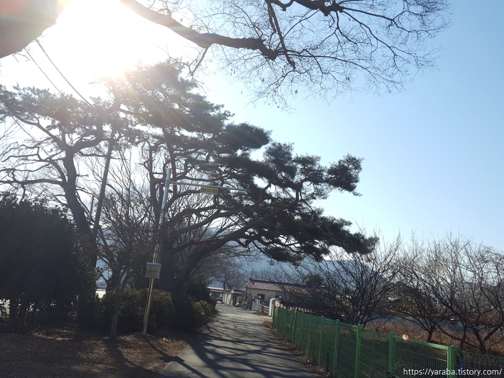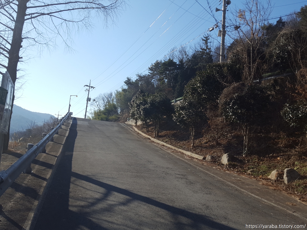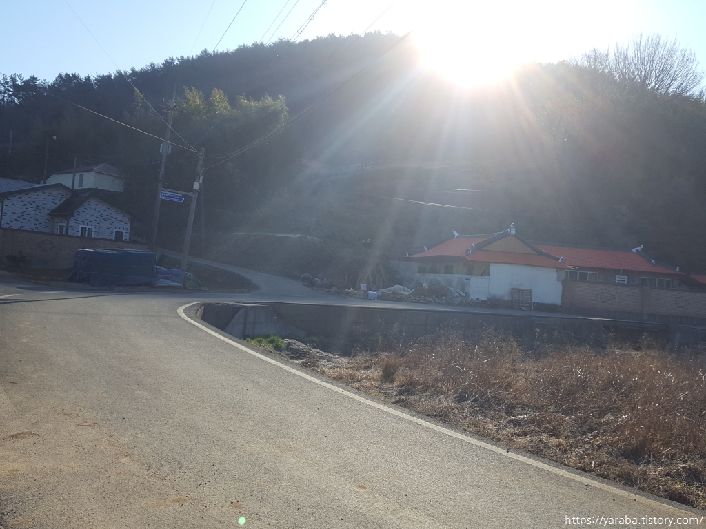 마을 끝에 있는 쇠두름산 앞에서 우회전하여 산 아래 자락을 따라 남쪽으로 이동한다.