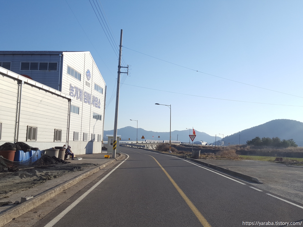 길은 전도 마을 외곽으로 해안선을 따라간다.