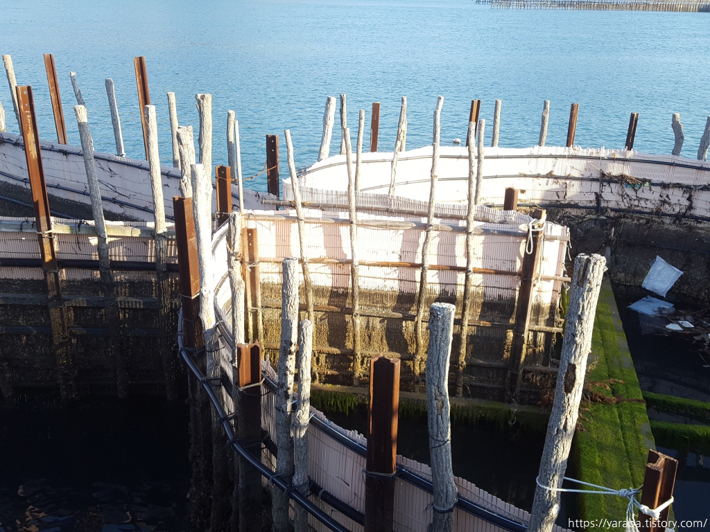 물고기가 많이 잡히는 5월에서 8월 사이라면 팔닥팔닥 뛰는 물고기와 반짝이는 멸치를 볼 수 있을지도 모르겠지만, 죽방렴으로 고기를 잡는 시기는 3월에서 12월까지라고 하니 지금은 볼 것이 없다.