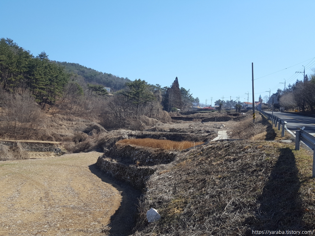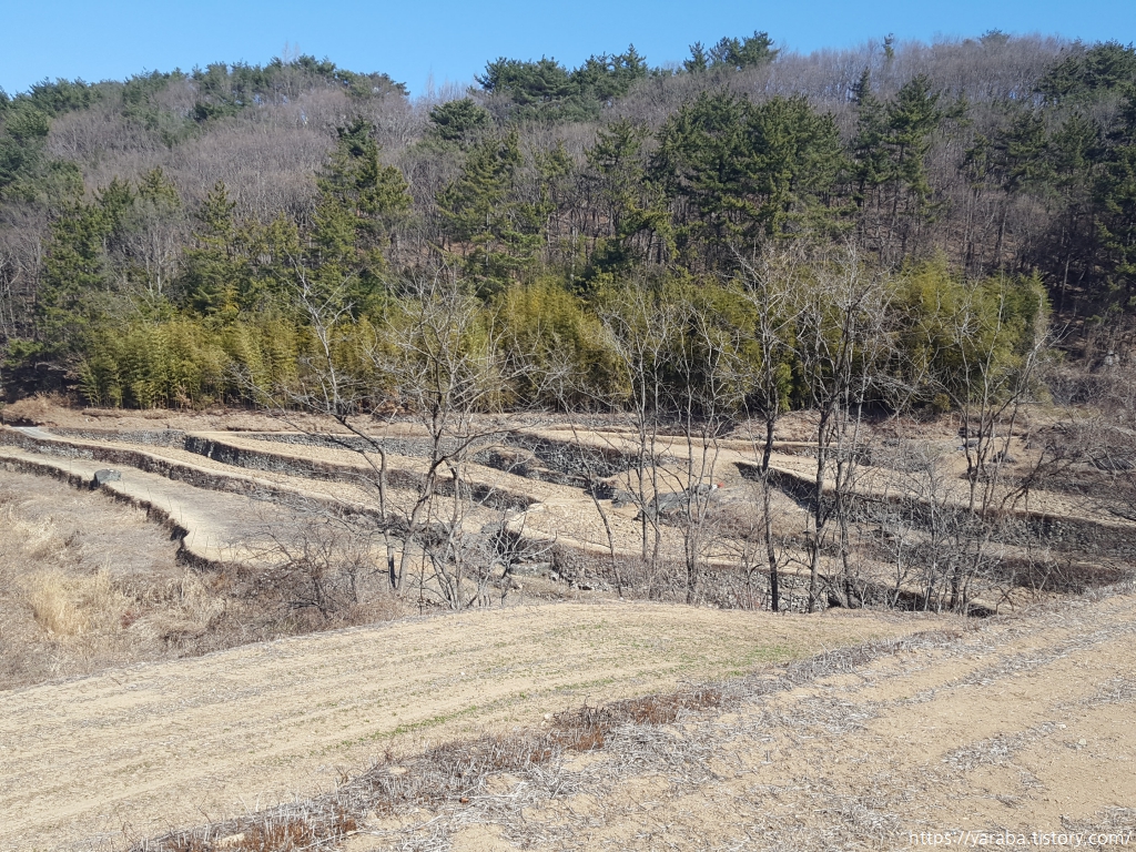 독일로 도로를 따라 내려가는 길, 바로 우측 계곡으로는 다랭이 논들이 이어진다. 지금은 녹음이 조금씩 기지개를 켜고 있지만 다랭이논을 보면 산비탈을 깎고 돌담을 쌓으며 가족들의 생계를 위해 온 정성을 쏟아부었을 선조들의 땀이 절로 그려진다.