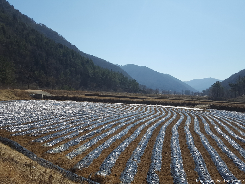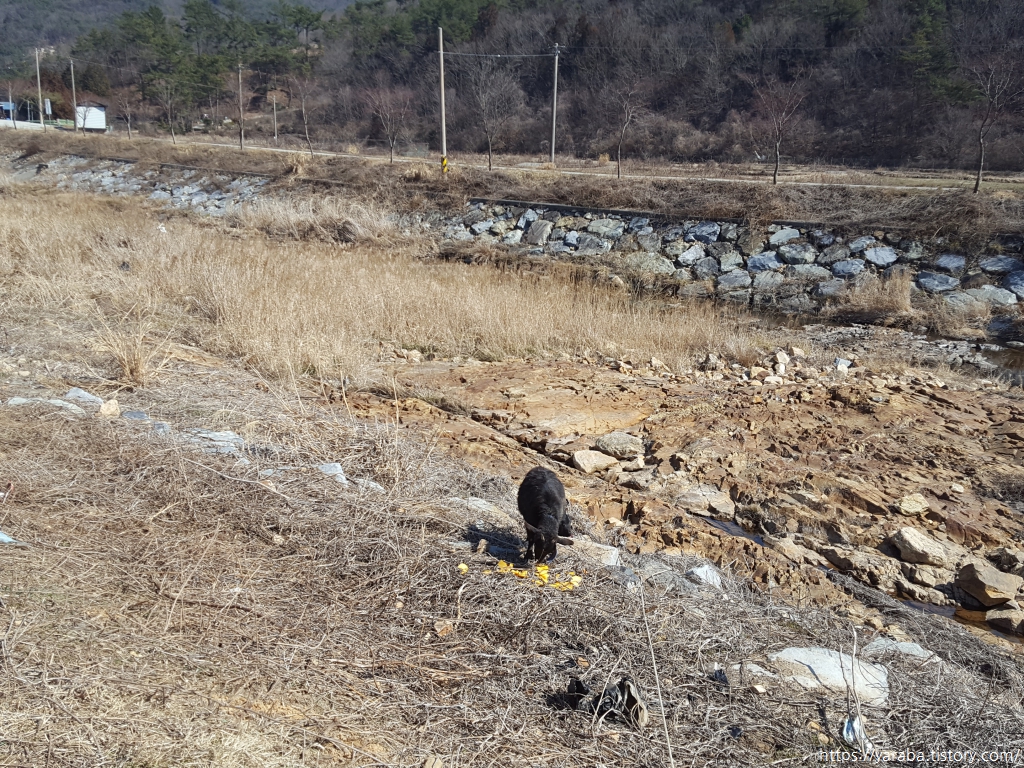 계곡으로 이어지는 넓은 평야로는 봄 농사 준비가 한창이다. 아무래도 감자를 심으시는 모양이었다. 남해에서는 홍감자와 멕시코 감자와 같은 특이한 작물을 재배하는 농가들이 많다는데 이곳에 심는 것이 무엇인지는 이제 심고 있으니 알 길이 없다. 농민이 메어 놓은 흑염소 한 마리는 주인이 던져준 늙은 호박을 먹느라 정신이 없다.