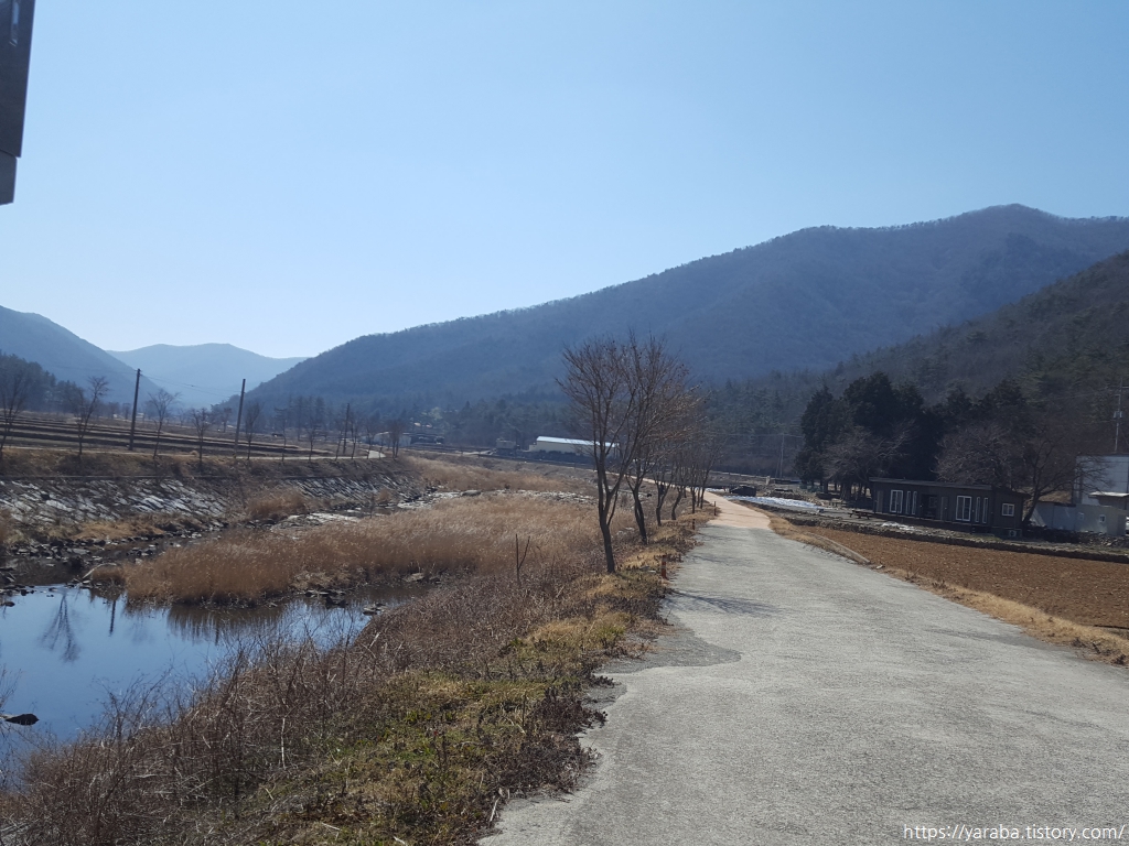 이번에는 다시 화천을 건너 하천 건너편에서 길을 이어간다. 시작점에서 4.7Km 정도 걸었다.