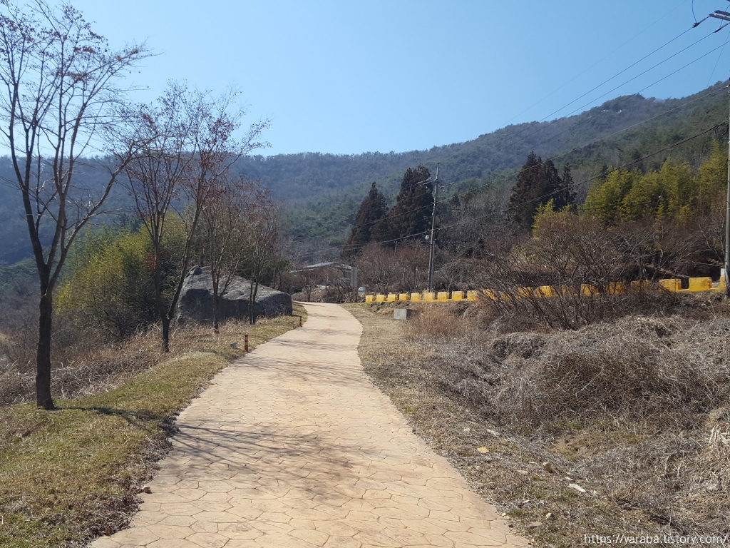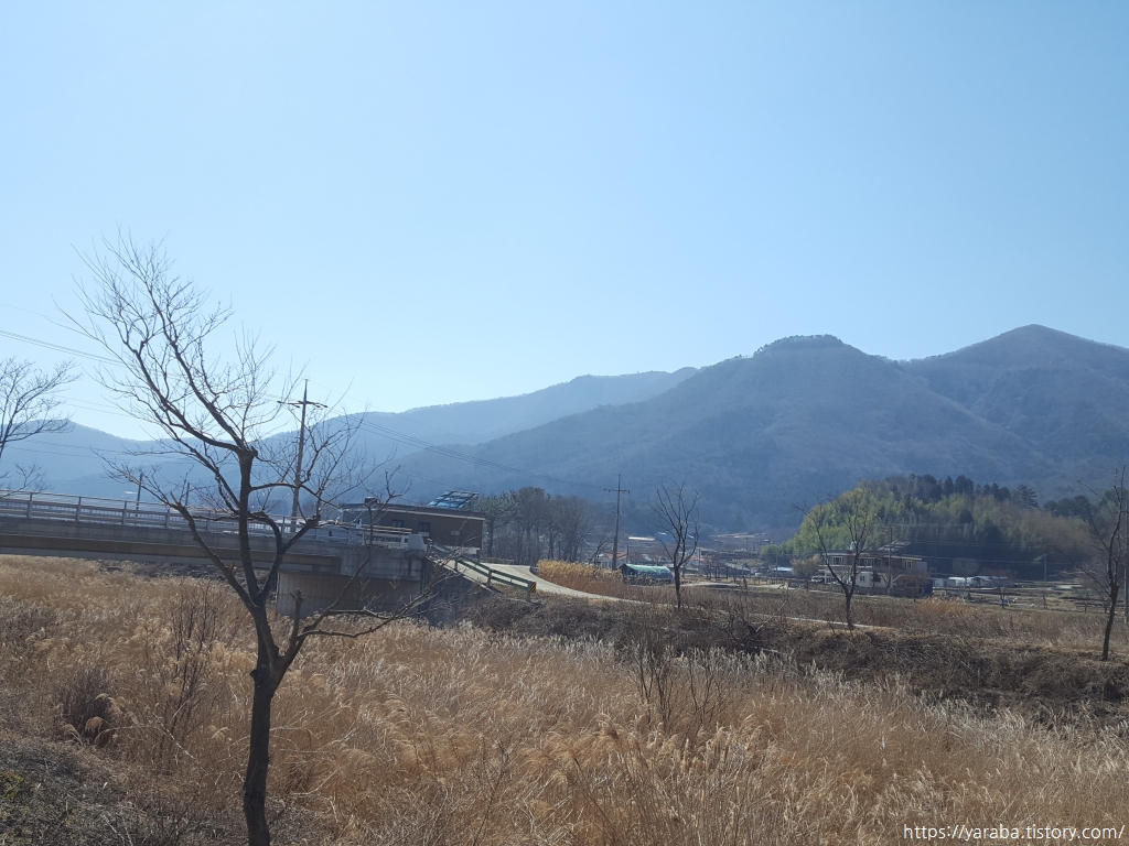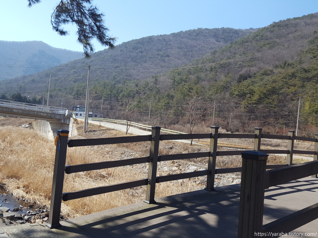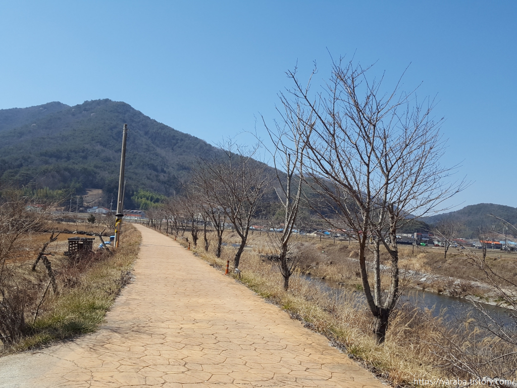 길은 다시 하천을 건너서 건너편 둑방길을 걷는다. 내산 저수지가 얼마 남지 않았다.