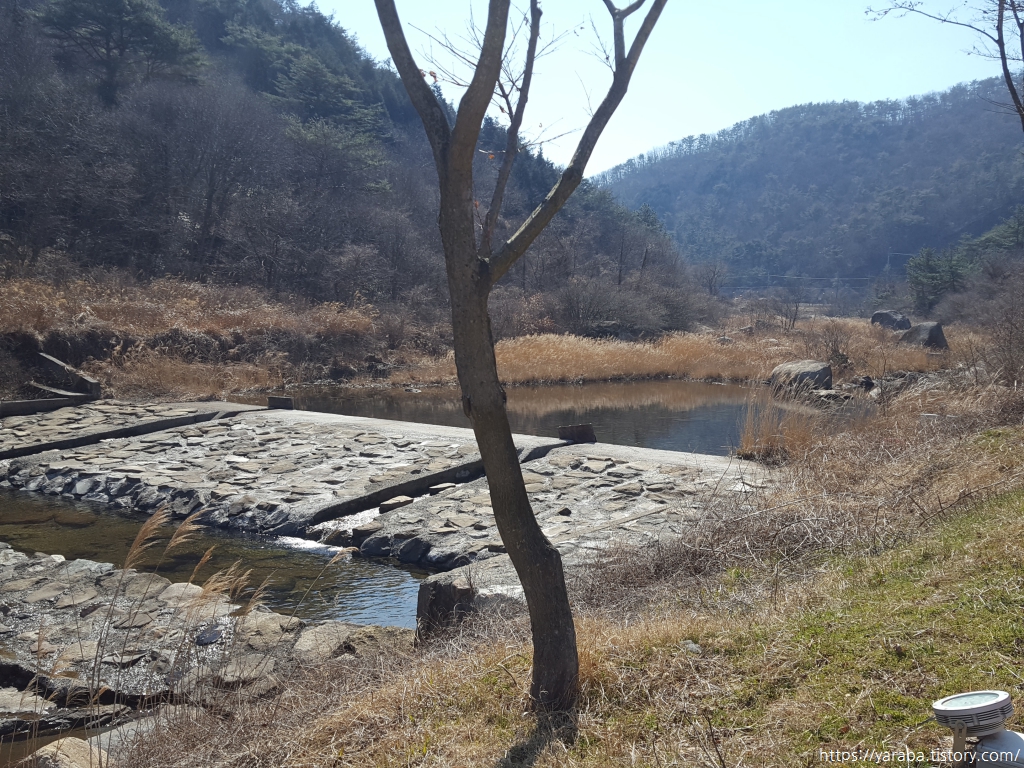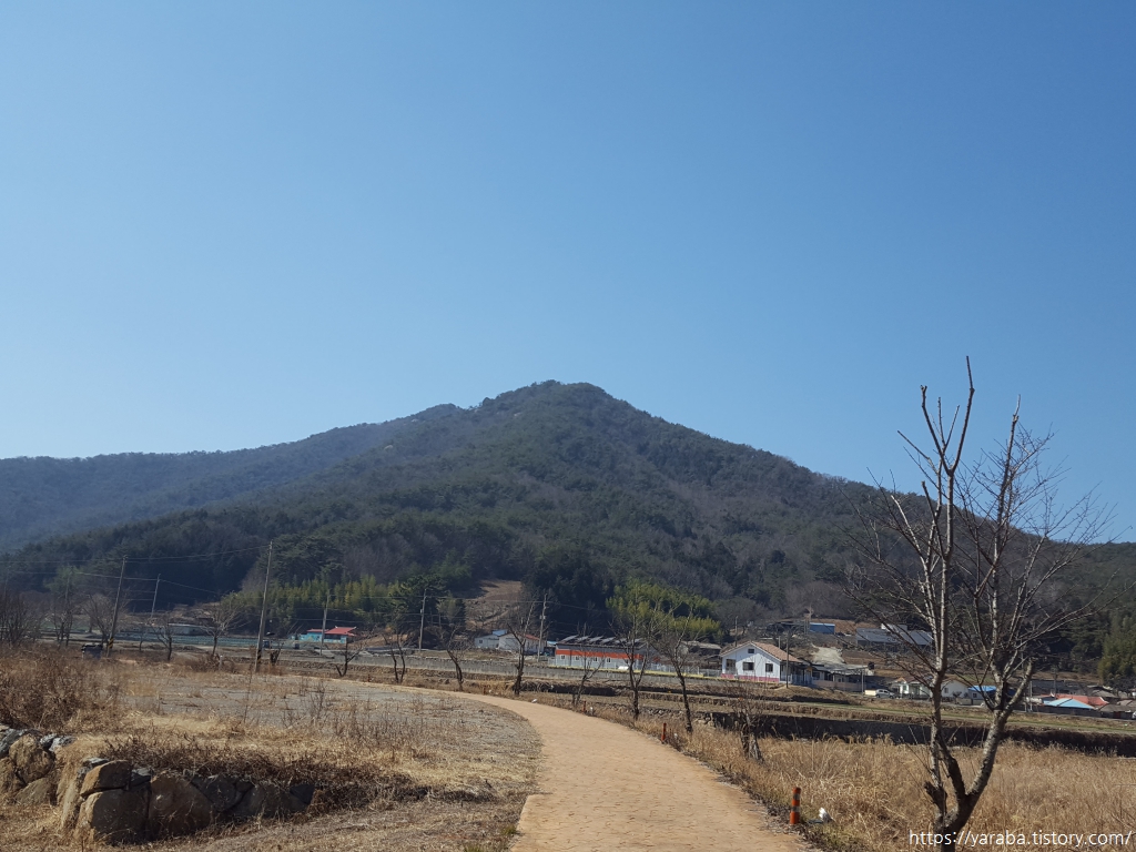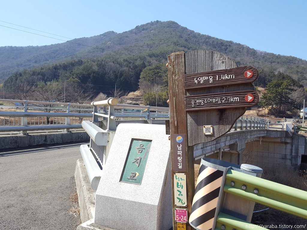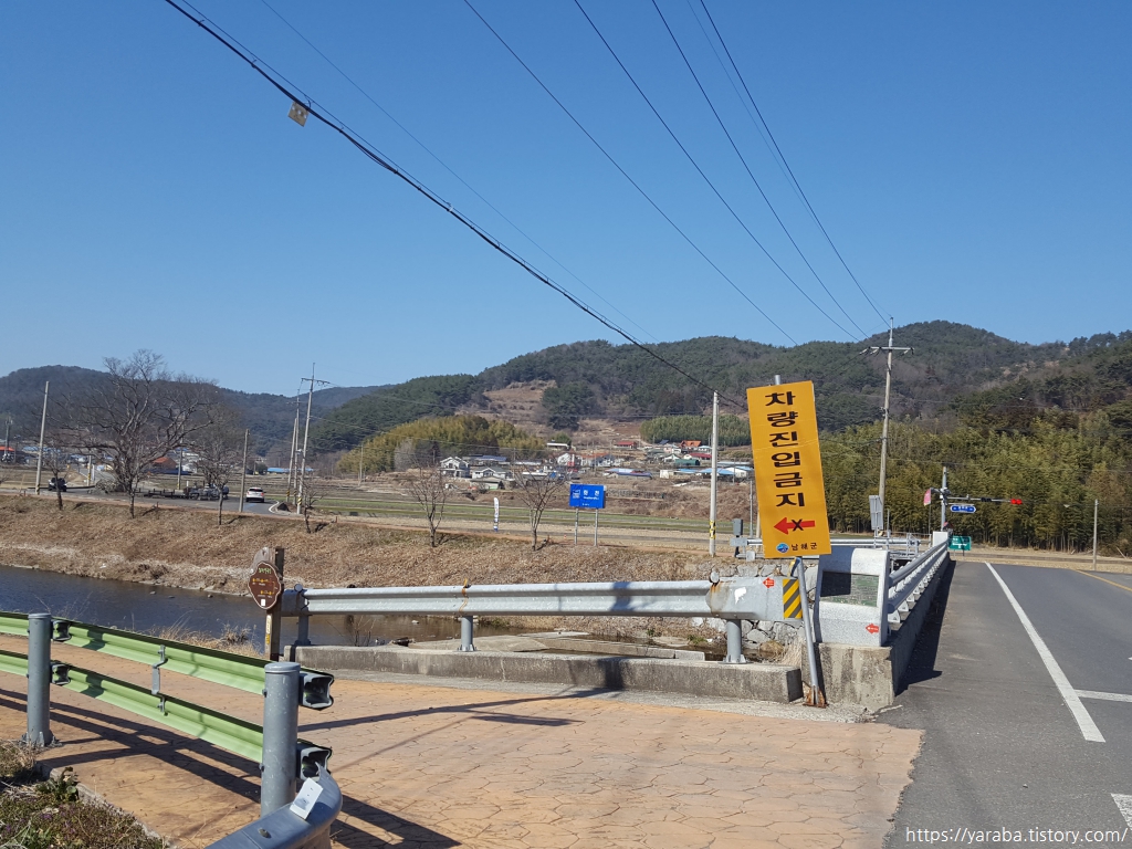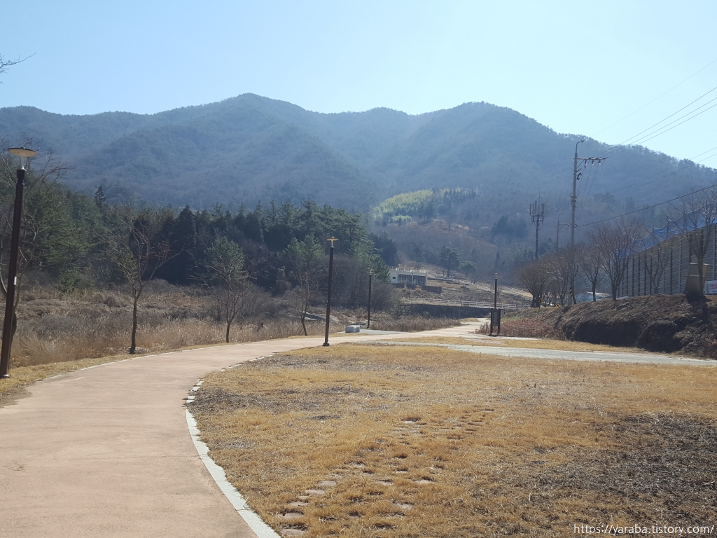 길은 다시 하천을 건너서 건너편 둑방길을 걷는다. 내산 저수지가 얼마 남지 않았다.