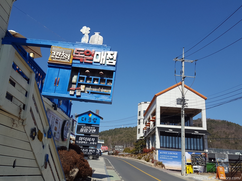 독일 마을 방문을 환영한다는 표지판에 쓰인 독일어를 보니 그토록 매스컴을 통해서만 만나왔던 독일 마을에 온 것이 실감이 나지만, 상업화의 파고가 언덕에 자리한 이 마을도 휩쓸고 갔구나 하는 생각에 마음 한편으로 씁쓸함이 밀려온다.