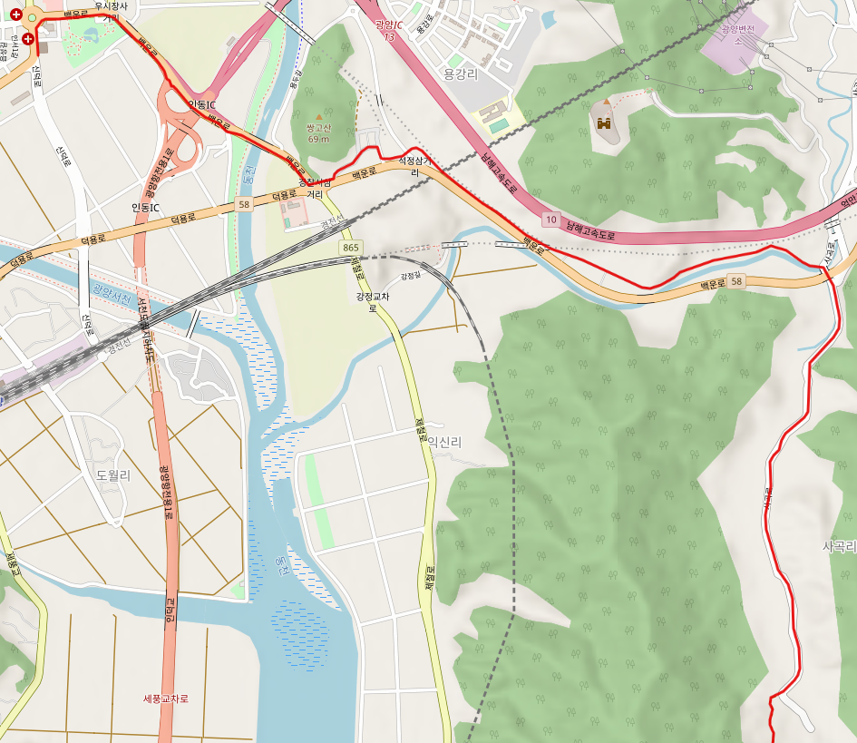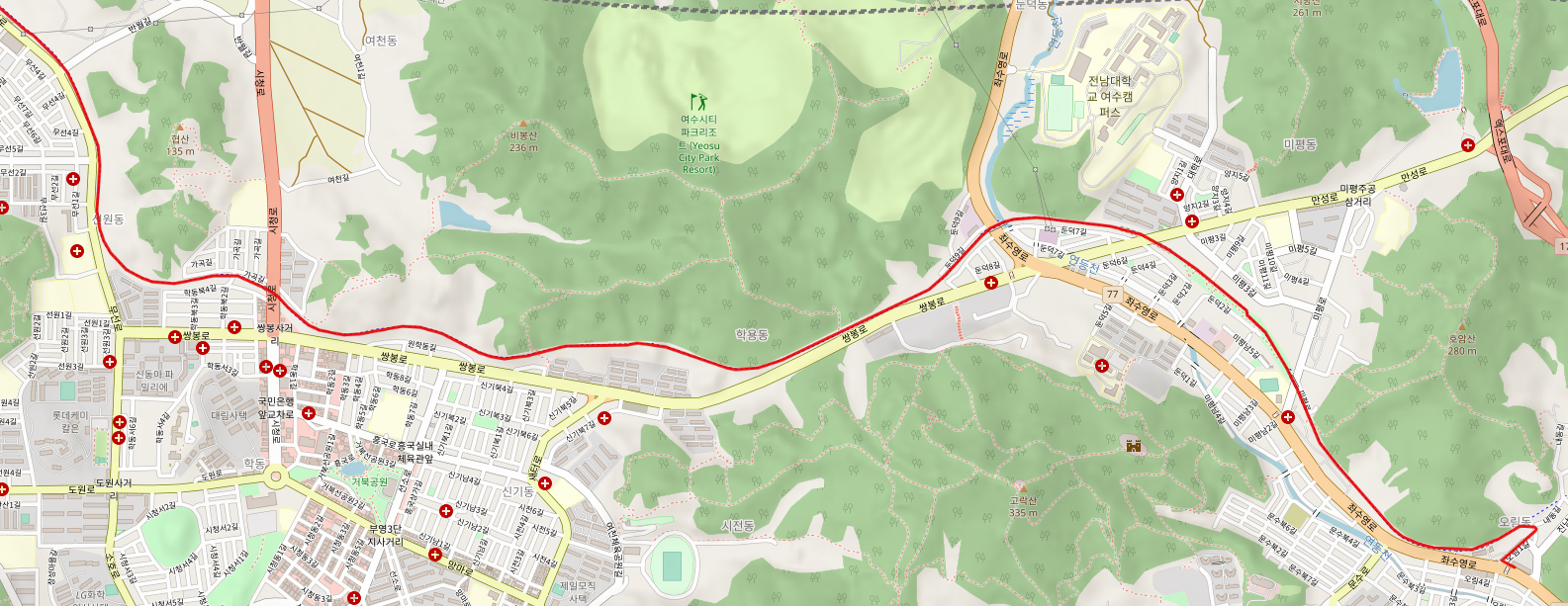 52코스를 끝내면 숙소들이 많은 여천 시외버스 터미널 인근으로 3.5Km 정도 더 걷는다. 전라선 폐선 산책로를 걷는다. 오늘 숙소는 여수 6&9로 인근 식당, 편의점, 대형 마트도 있다.