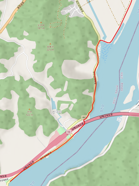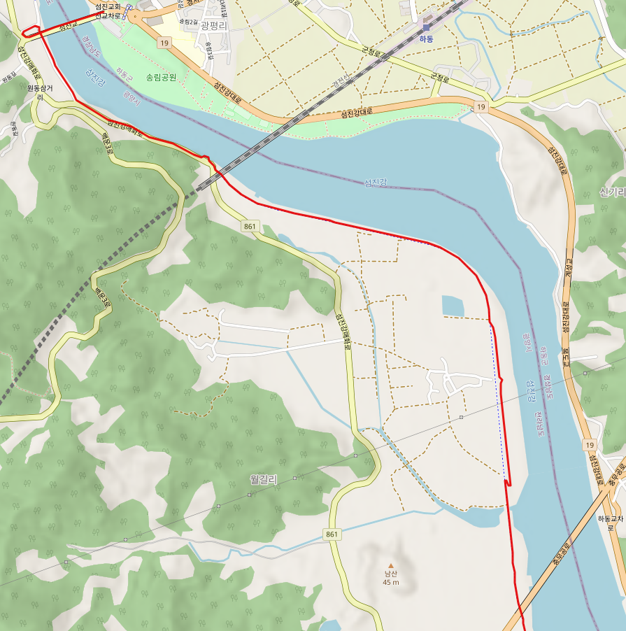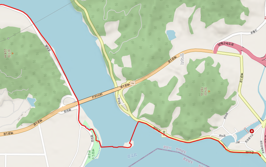 남파랑길 47코스가 끝나면 섬진교를 건너서 우측으로 돌아 섬진교 아래로 광양 땅의 섬진강변 걷기를 시작한다. 강변을 따라 철교 아래와 섬진강교 아래를 차례로 지난다. 상당 부분을 섬진강 자전거길과 같이 간다.