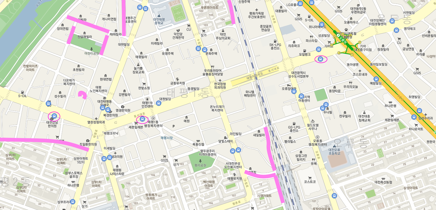 이번 여행은 지난번 남겨 놓았던 하동 47코스의 3.5Km 정도를 마무리할 예정이므로 금요일 저녁에 서대전역 인근에 자동차를 세워두고 대전 복합 터미널로 이동하여 진주로 내려가 하룻밤을 쉬었다가 다음날 첫차로 하동으로 이동한다. 위의 그림은 서대전 인근의 공영 무료 주차장으로 차를 세우고 나면 오룡역 2번 출구 정류장이나 태평1동 주민센터 정류장이나 태평 오거리 정류장에서 601번 시내버스를 타면 대전 터미널로 이동할 수 있다. 서대전역 인근에 차를 세워두는 이유는 여행을 끝나고 올라올 때는 여수 EXPO역에서 기차를 탈 예정이기 때문이다.