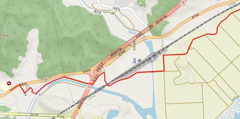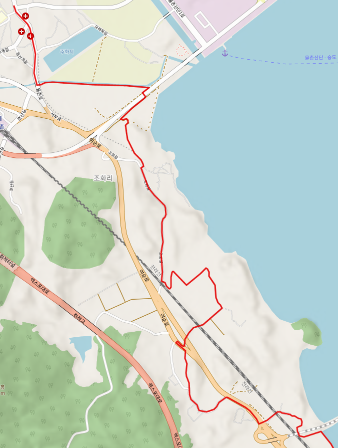 여수로 들어오면 52코스를 이어서 걷는다. 율촌면 사무소를 떠나 하천변과 농로를 가로질러 조하리 사무소(2.5Km) 지나고 전라선 철로를 가로지르면서 길을 이어간다.