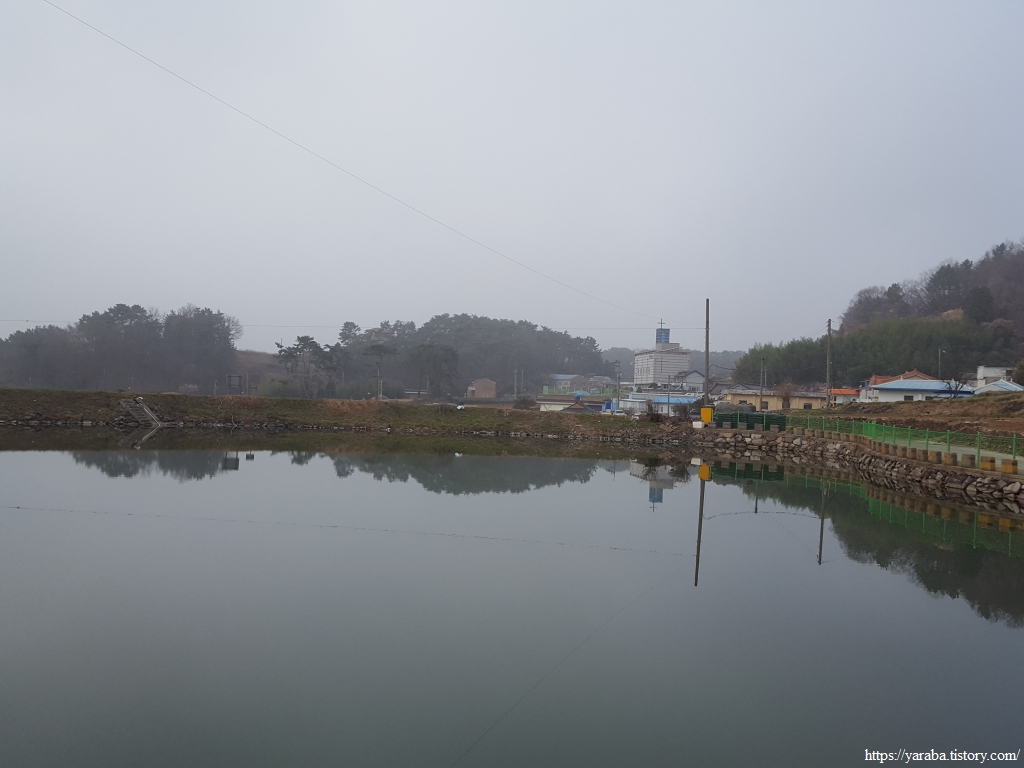 길은 용문사길을 벗어나 갓목산 아랫 자락을 돌아서 길을 이어간다. 산 아래로 용소 마을을 보면서 걷는 길에서는 높다란 수로가 독특한 풍경을 만들어내고 있다. 지금은 모터 펌프로 어렵지 않게 물을 퍼올릴 수 있는 세상이지만, 그럼에도 이런 수로의 가치는 농민들, 특히 벼농사를 짓는 농민들에게는 없어서는 안 되는 존재다.