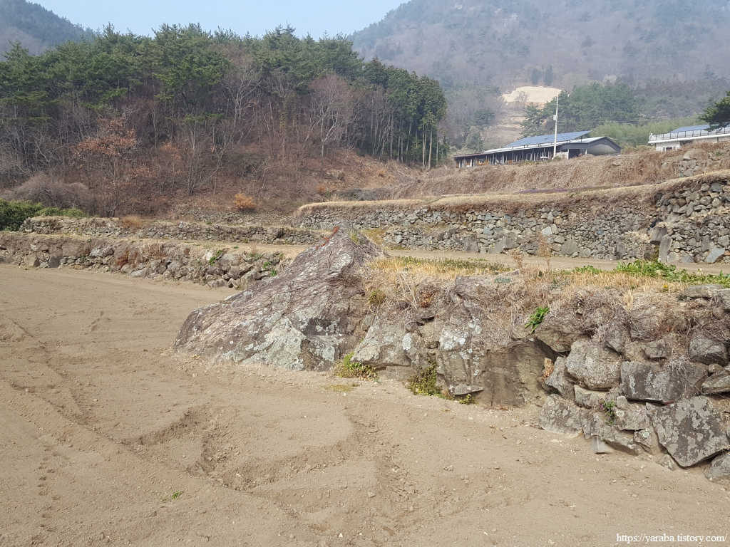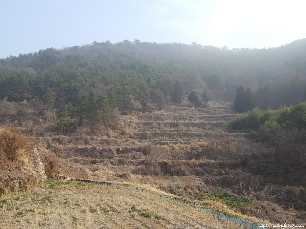 오르막 농로를 헉헉 거리며 올라가는 길에서는 다양한 모습의 다랭이 밭들을 만난다. 농가 인근으로 사람 손이 많이 간 밭도 있고, 밭 중간에 큼지막한 바위를 미처 빼내지 못하고 그대로 담을 쌓은 밭도 있고, 멀리 농기계가 들어가지 못해 방치된 것으로 보이는 다랭밭들도 보인다. 그 누구는 생존을 걸고 비탈을 깎고 돌을 쌓아 다랭이 논과 밭을 일구었을 텐데 방치된 밭을 보니 세월의 무상함과 함께 땅이 사람들에게 주는 가치의 변화를 생각하게 된다.