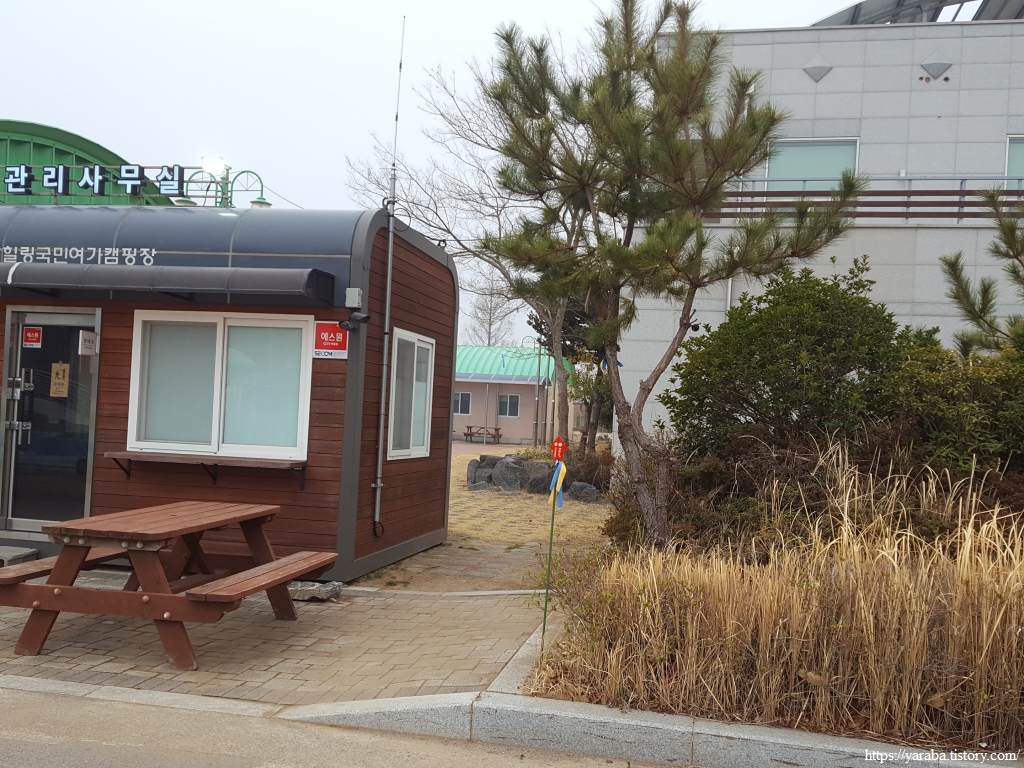 남파랑길은 안내센터 측면을 지나 앵강다숲 관리 사무실을 가로질러 간다.
