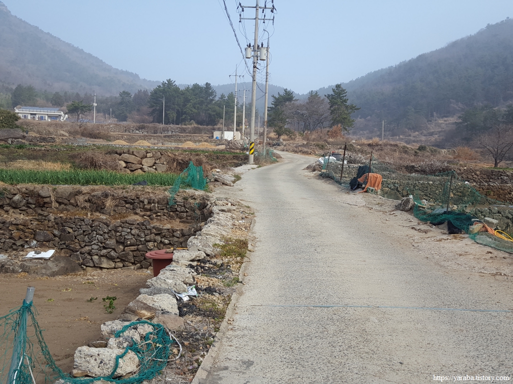 "금평" 버스 정류장에 내려 남파랑길 42코스의 시작점인 남해 바래길 탐방 안내 센터로 가는 길은 해무가 가득하다. 봄 농사를 준비하는 분주함이 느껴지는 3월 중순의 남해는 이른 아침의 서늘함과 봄기운이 공존하는 분위기다.