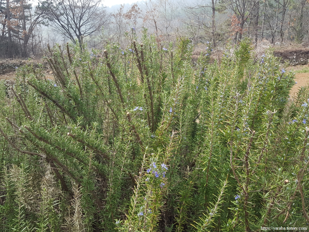 집에서 자라고 있는 로즈메리는 10년이 넘게 살고 있지만 도통 꽃을 본 적이 없는데, 이곳의 로즈메리는 파란 꽃을 활짝 피웠다. 소나무같이 생겨서 줄기를 만져야 향기가 나는 그런 정도의 식물로 생각하고 있었는데, 남해에 오니 로즈메리에 대한 생각이 달라진다.