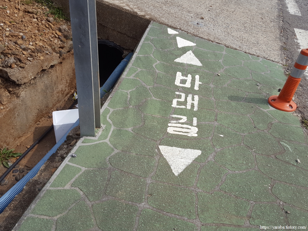 도로변을 걷던 길은 좌회전하여 해변으로 내려간다.