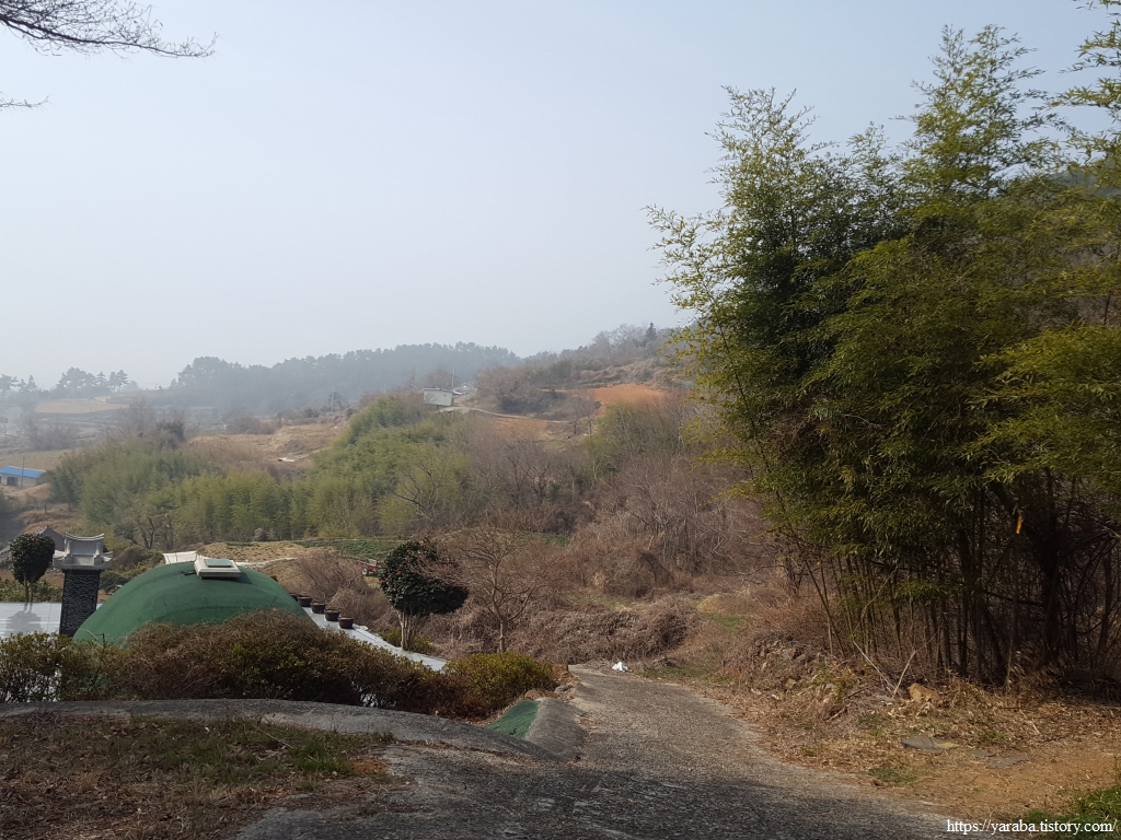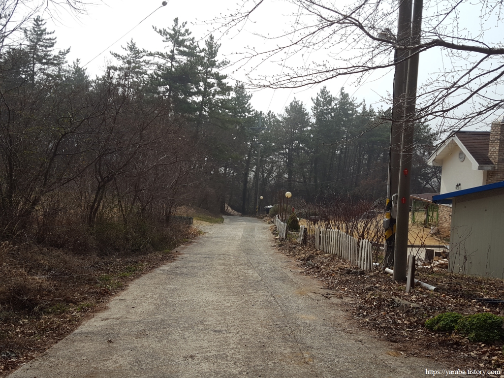 산 허리로 이어지는 농로를 걷는 느낌은 푸근함과 평화로움이다. 가끔씩 동네 개들이 짖는 소리가 정적을 깰 뿐이다.