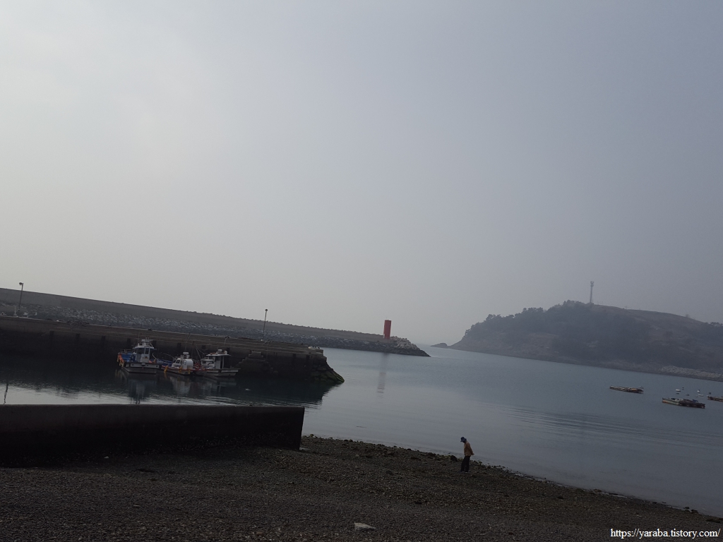 항촌 마을의 해안은 서쪽을 향하고 있는데, 저물어가는 석양이 해무를 뚫고 빛을 뿌린다. 해무가 없었다면 바다 건너 여수 돌산도가 보였을 것이다. 선구항을 향해서 뚜벅뚜벅 길을 이어간다.