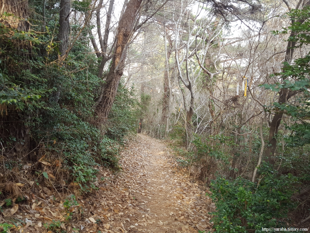 항촌 마을을 조망할 수 있는 언덕을 지나면 길은 숲길을 통해 내륙 방향으로 들어간다.