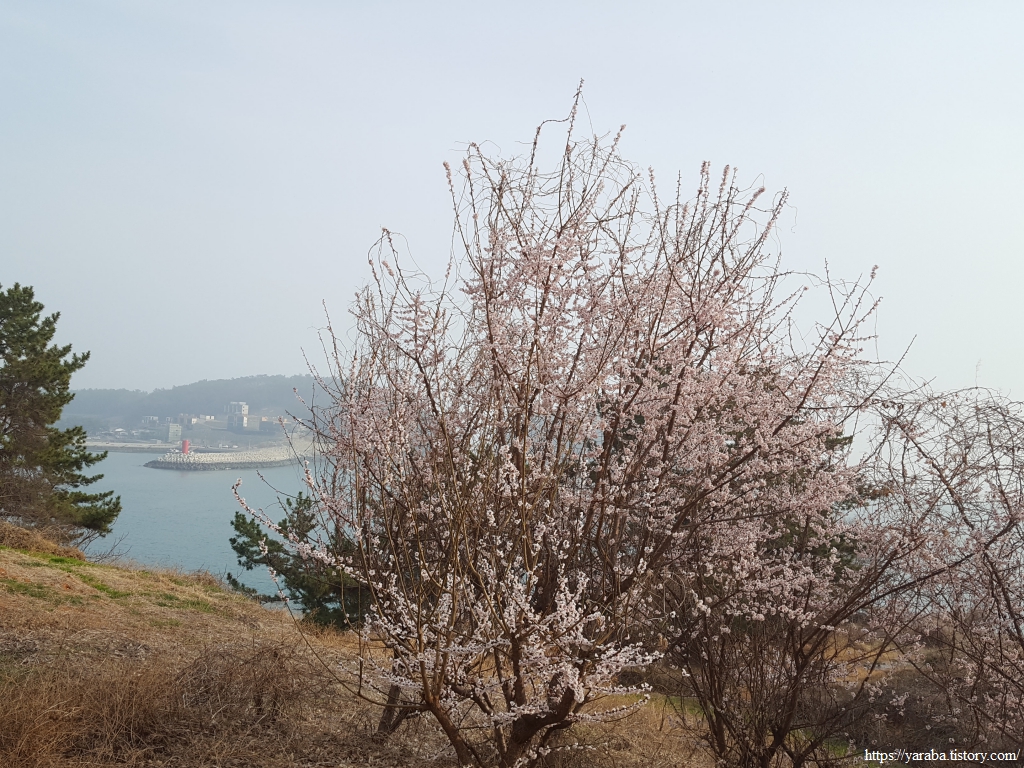 반대쪽 사촌 해수욕장 방향의 풍경은 해무가 가득한 사촌 해수욕장과 그 뒤로 망기산과 고동산이 존재를 뽐내고 있다.