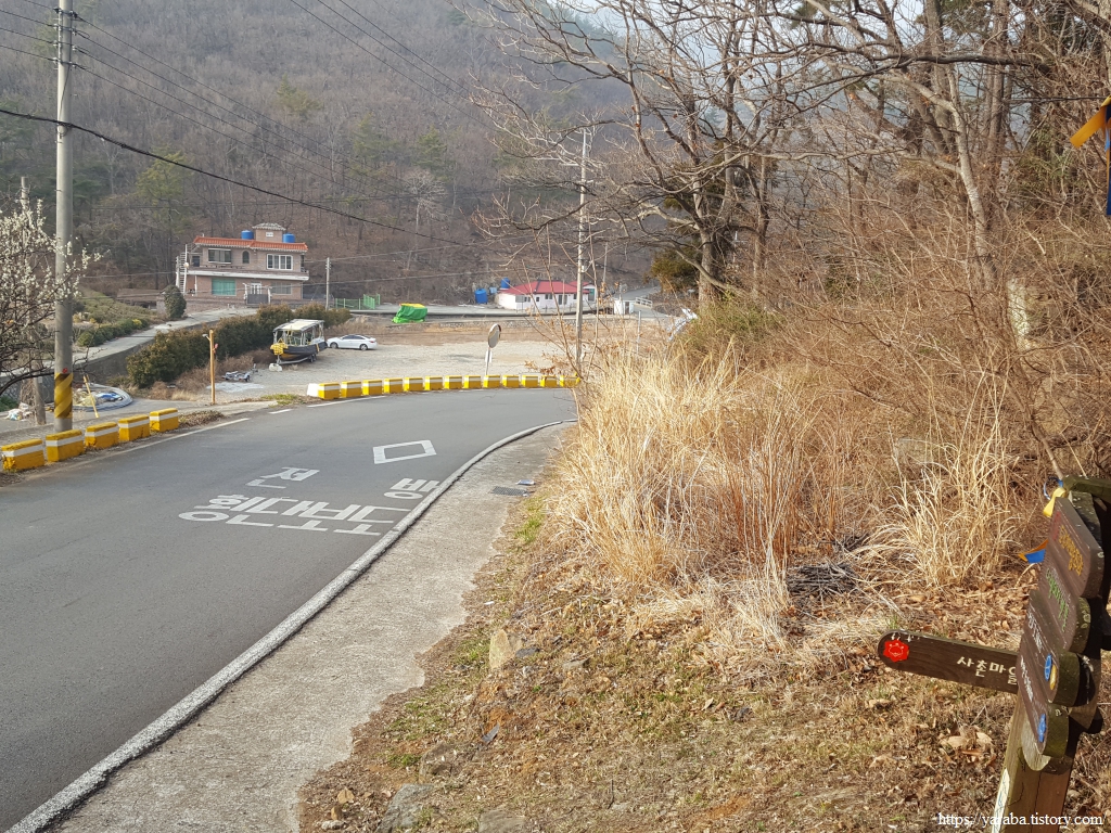 길은 선구마을 앞 정류장을 지나 잠시 도로변을 걷는다.
