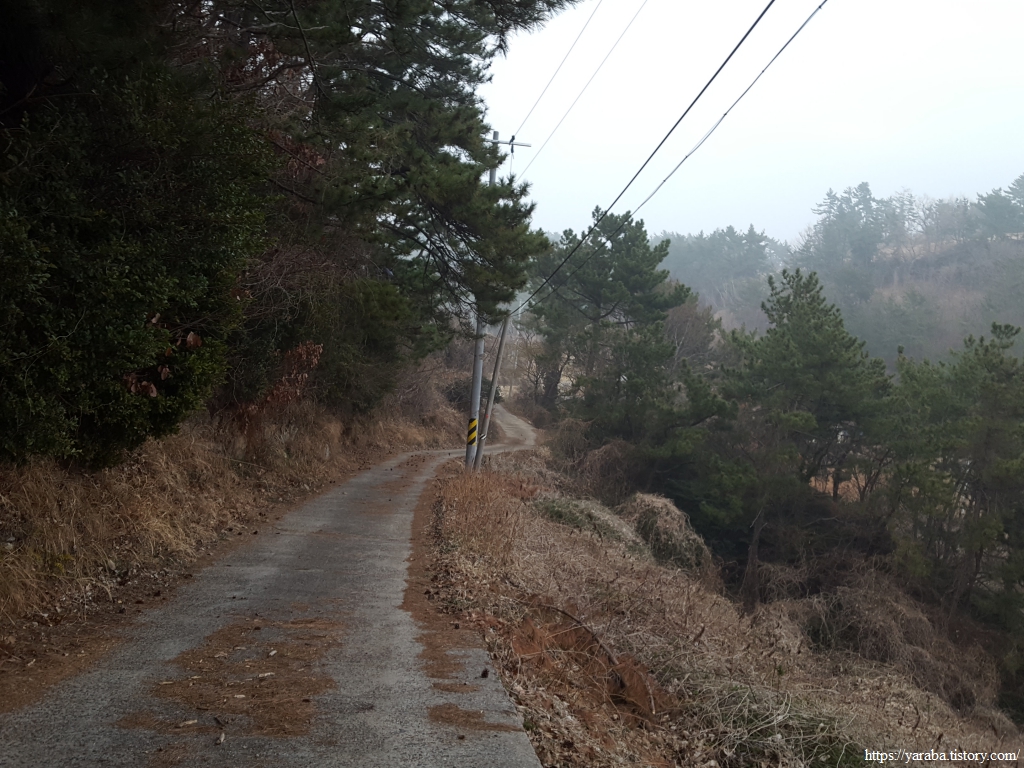 해안 방호벽 끝자락에서도 해무 덕택에 바다 구경을 하지 못하고 포장 해안길을 따라 길을 이어간다.