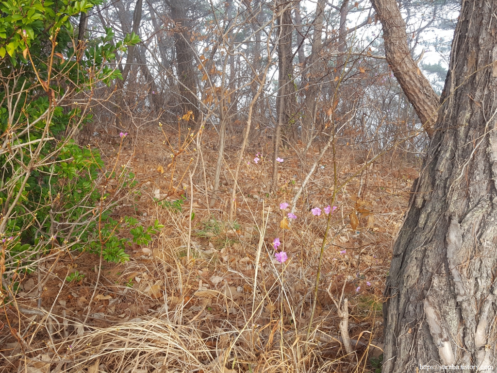 바다도 육지도 해무가 장악한 세계에서 내 시선으로 즐길 수 있는 것은 바로 눈앞에 있는 것뿐이다. 아름다운 풍광 감상이라는 단어는 쏙 들어갔다. 그러다 발견한 숲 속 진달래가 마음을 들뜨게 한다.