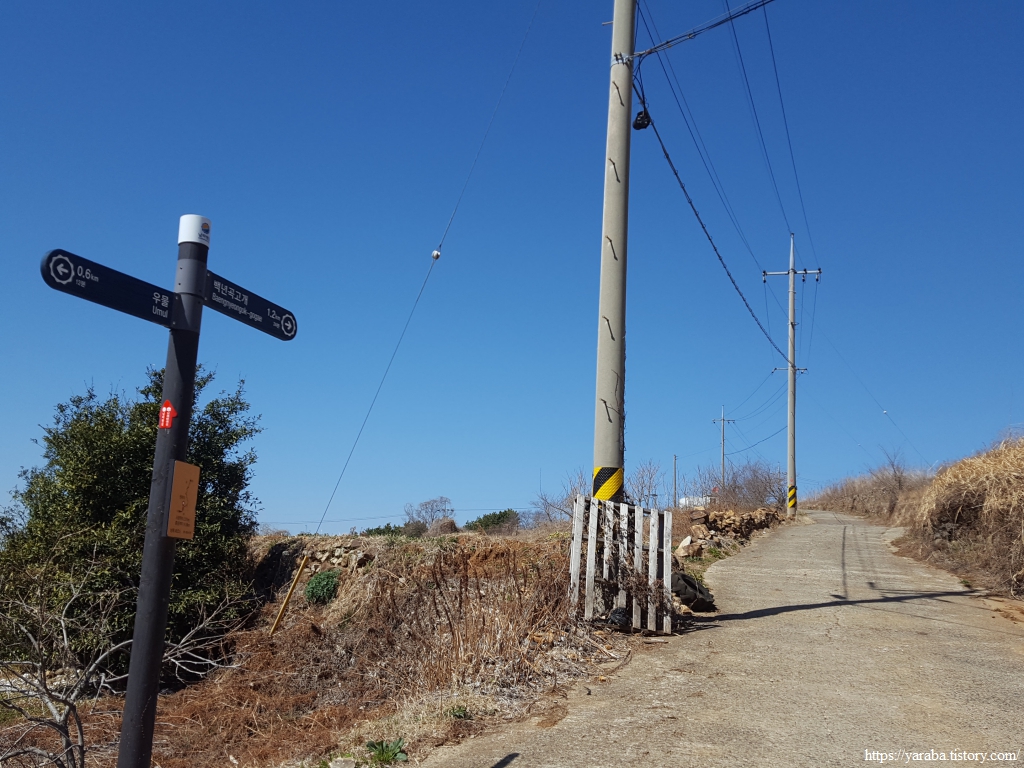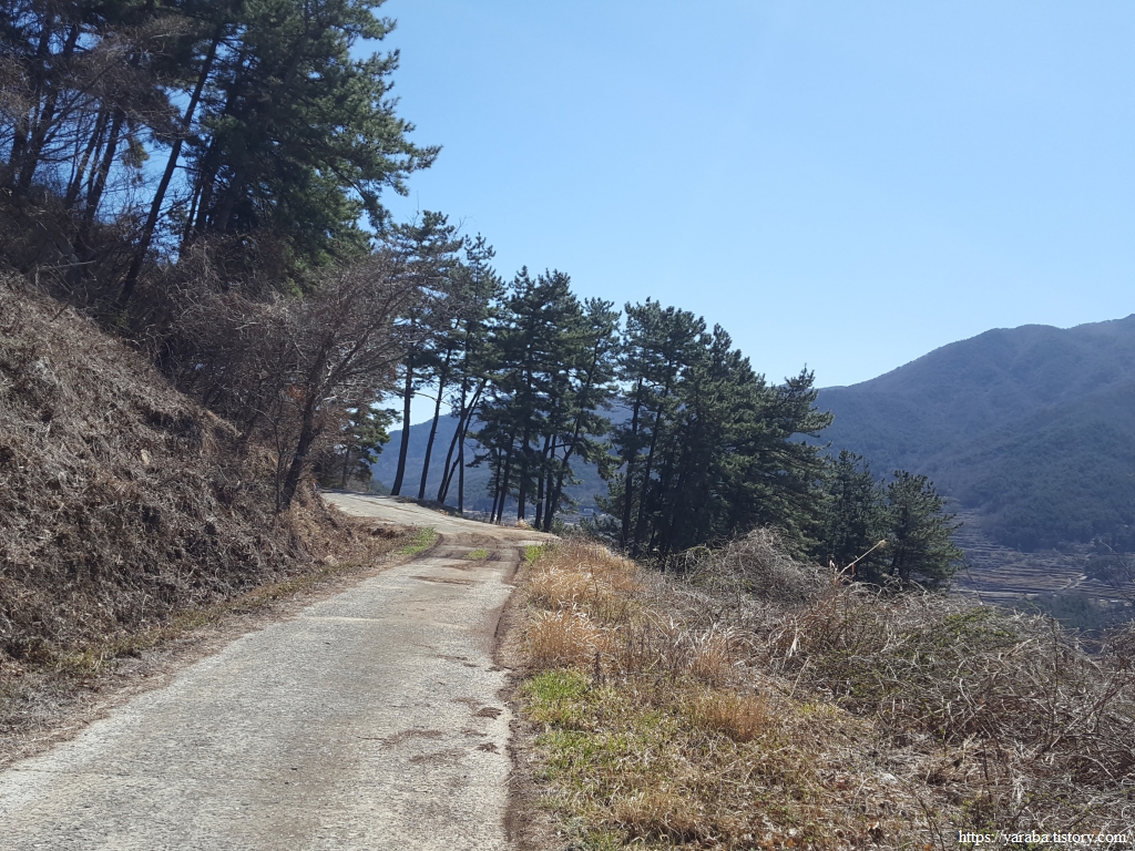우물마을을 벗어난 남파랑길은 본격적으로 삼봉산 자락의 길을 걸어 백년곡 고개로 향한다.